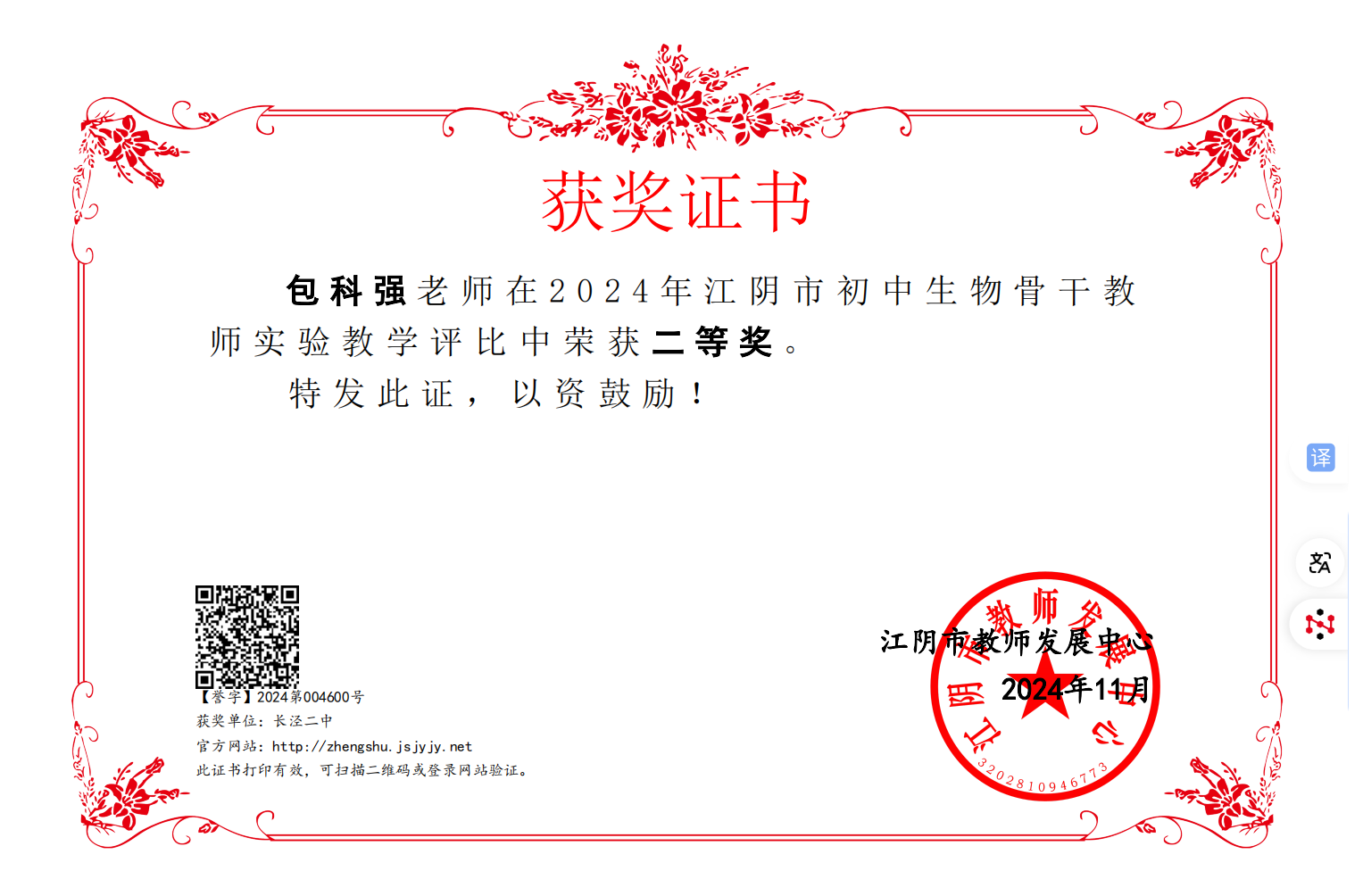 2024年江阴市初中生物骨干教师实验教学评比二等奖