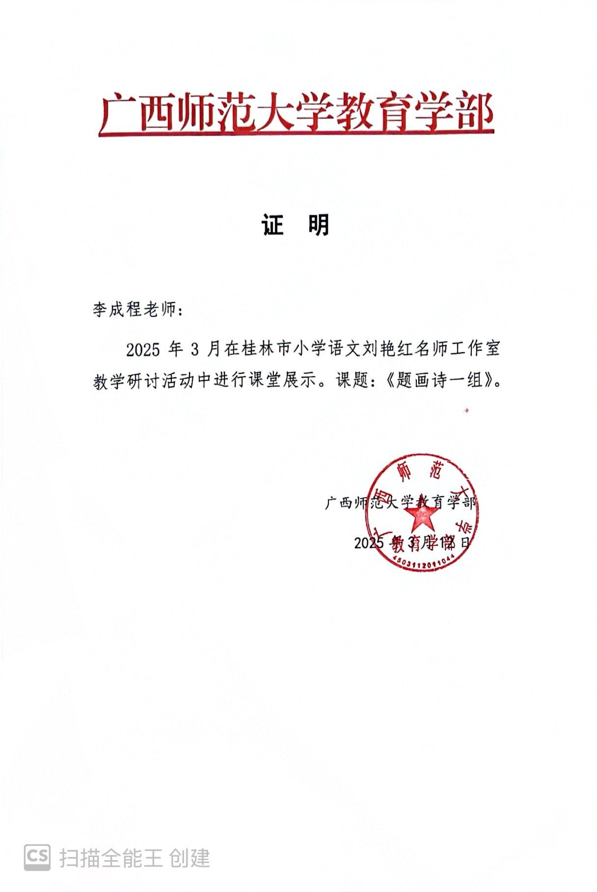 网站类目:荣誉提升情况 姓名:李成程 所在单位:江阴市夏港实验小学 荣誉类别:特级教师 荣誉级别:市级 获得时间:2025-03-12 评比部门:广西师范大学教育学部