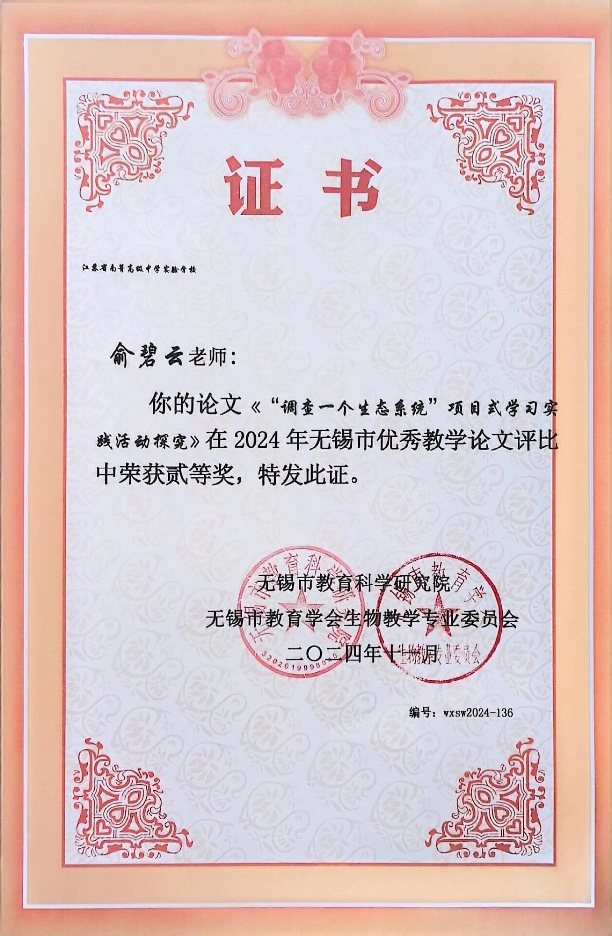 2024年无锡市优秀教学论文评比二等奖 2025-09-23