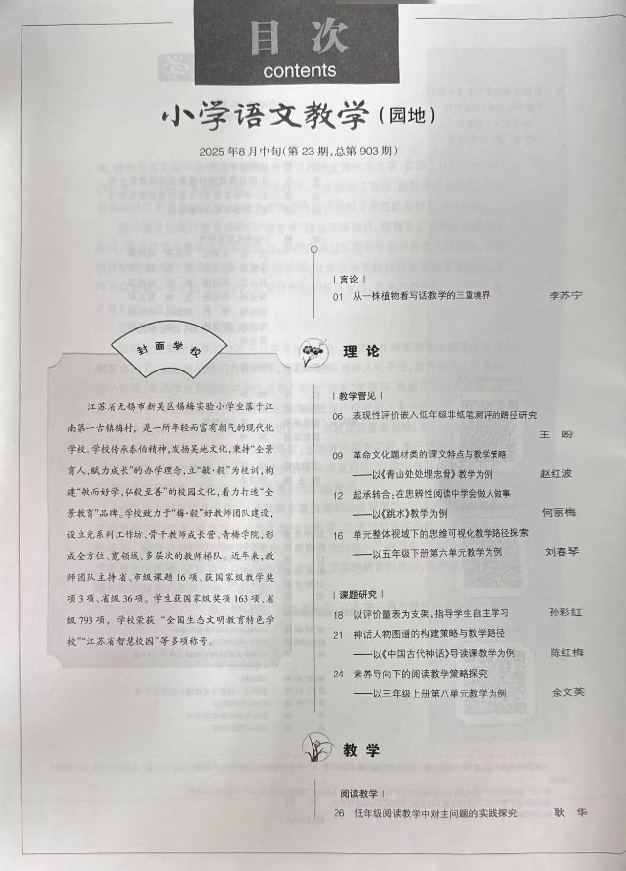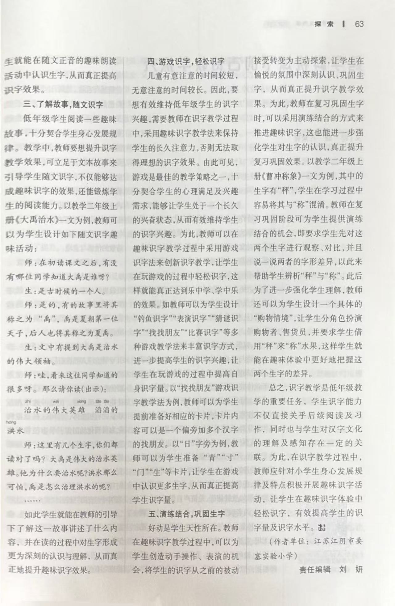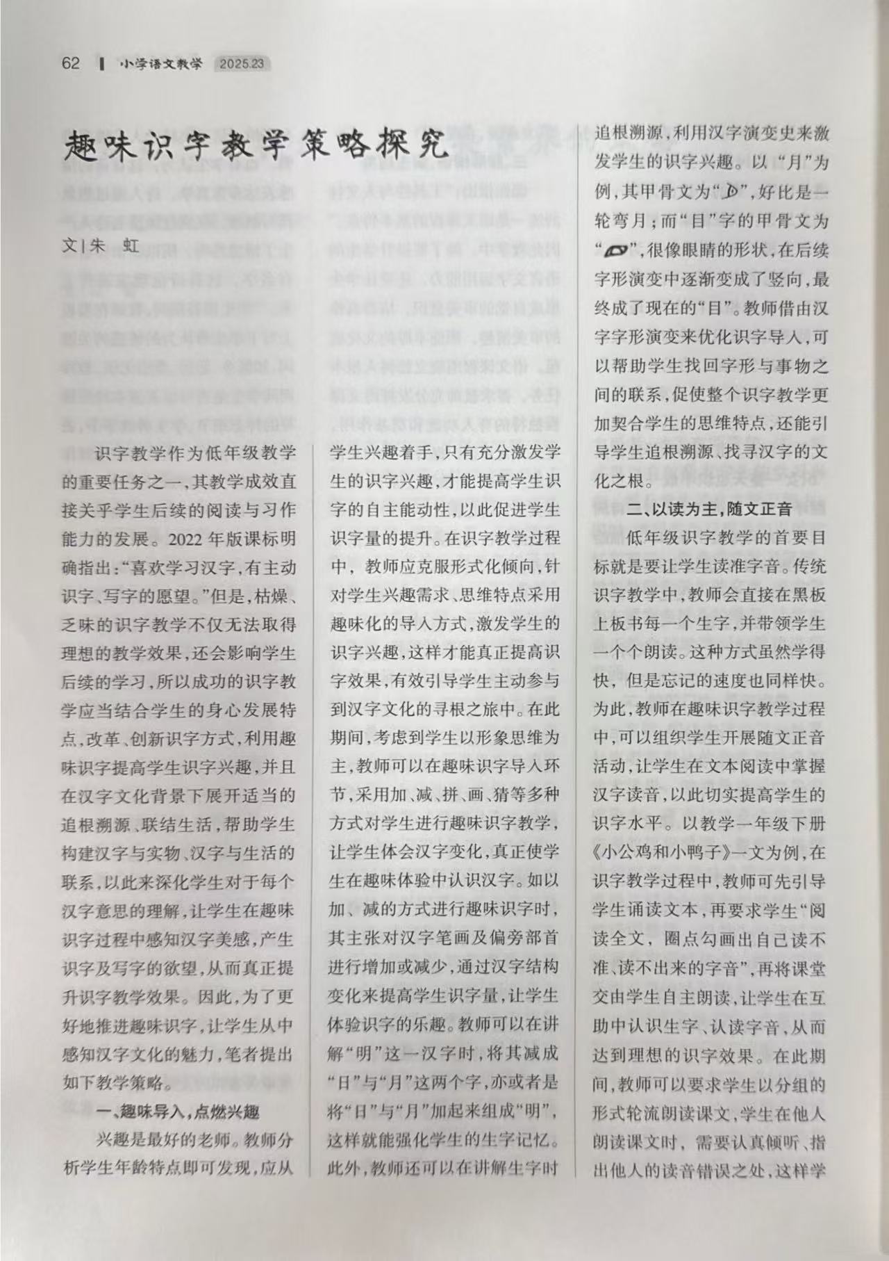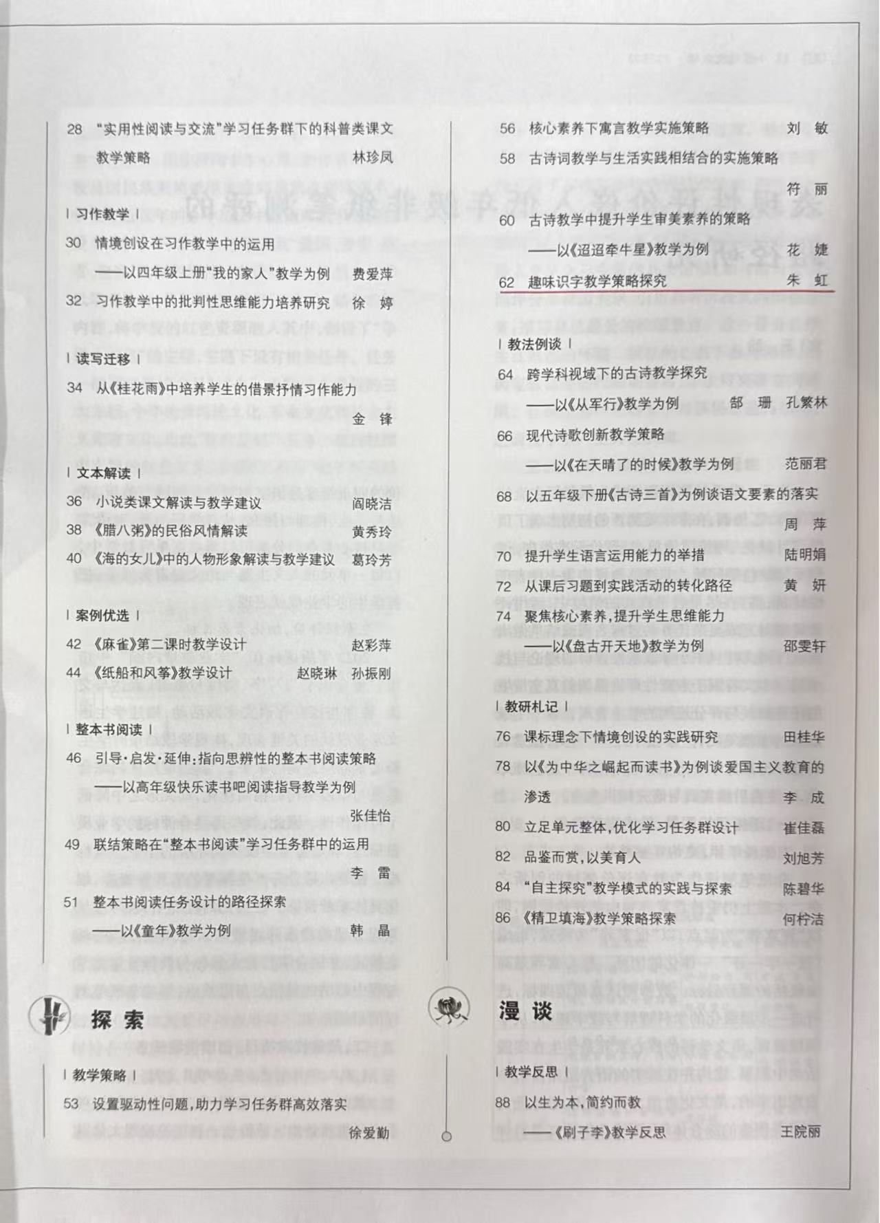 发表刊物:小学语文教学