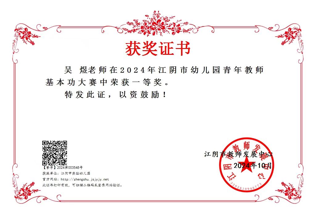吴煜老师在江阴市幼儿园青年教师基本功大赛中获一等奖