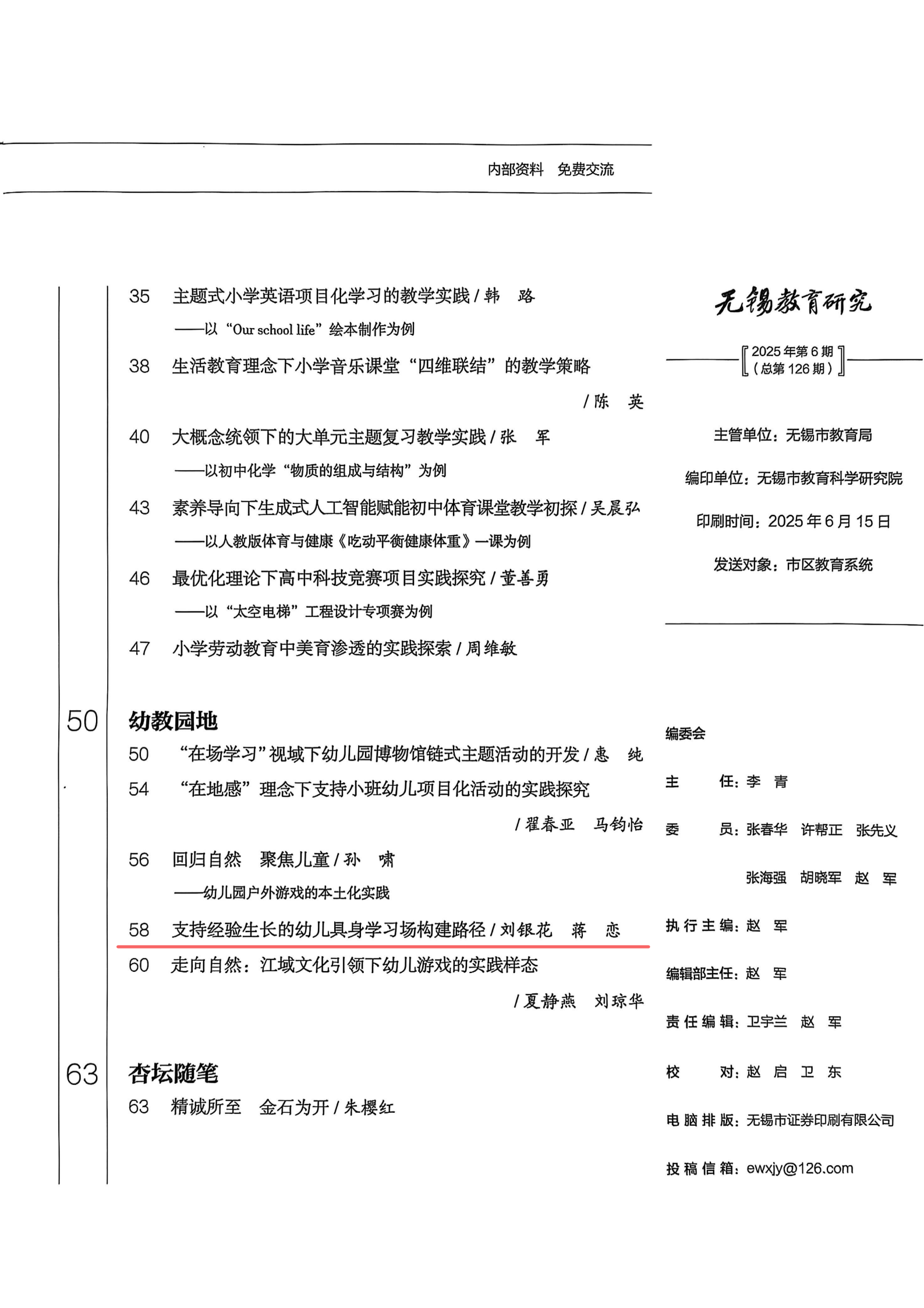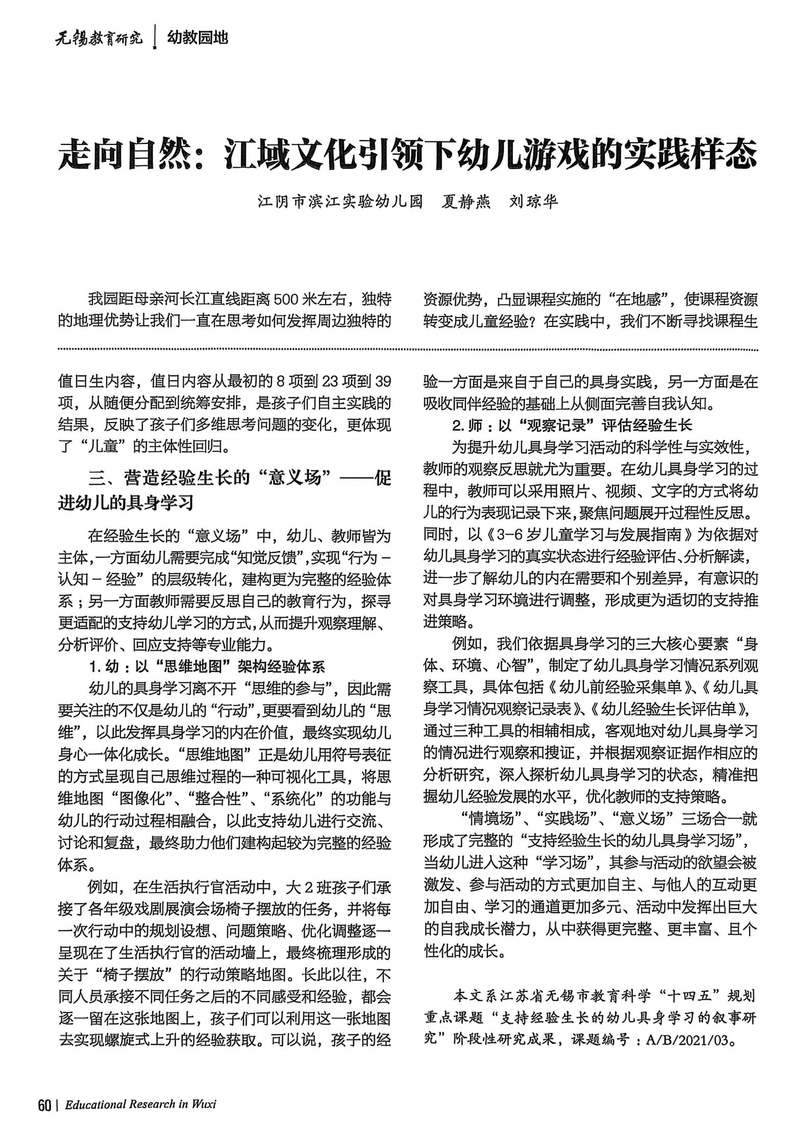刘银花、蒋恋老师的《支持经验生长的幼儿具身学习场构建路径》发表于无锡教育研究 2025-09-23