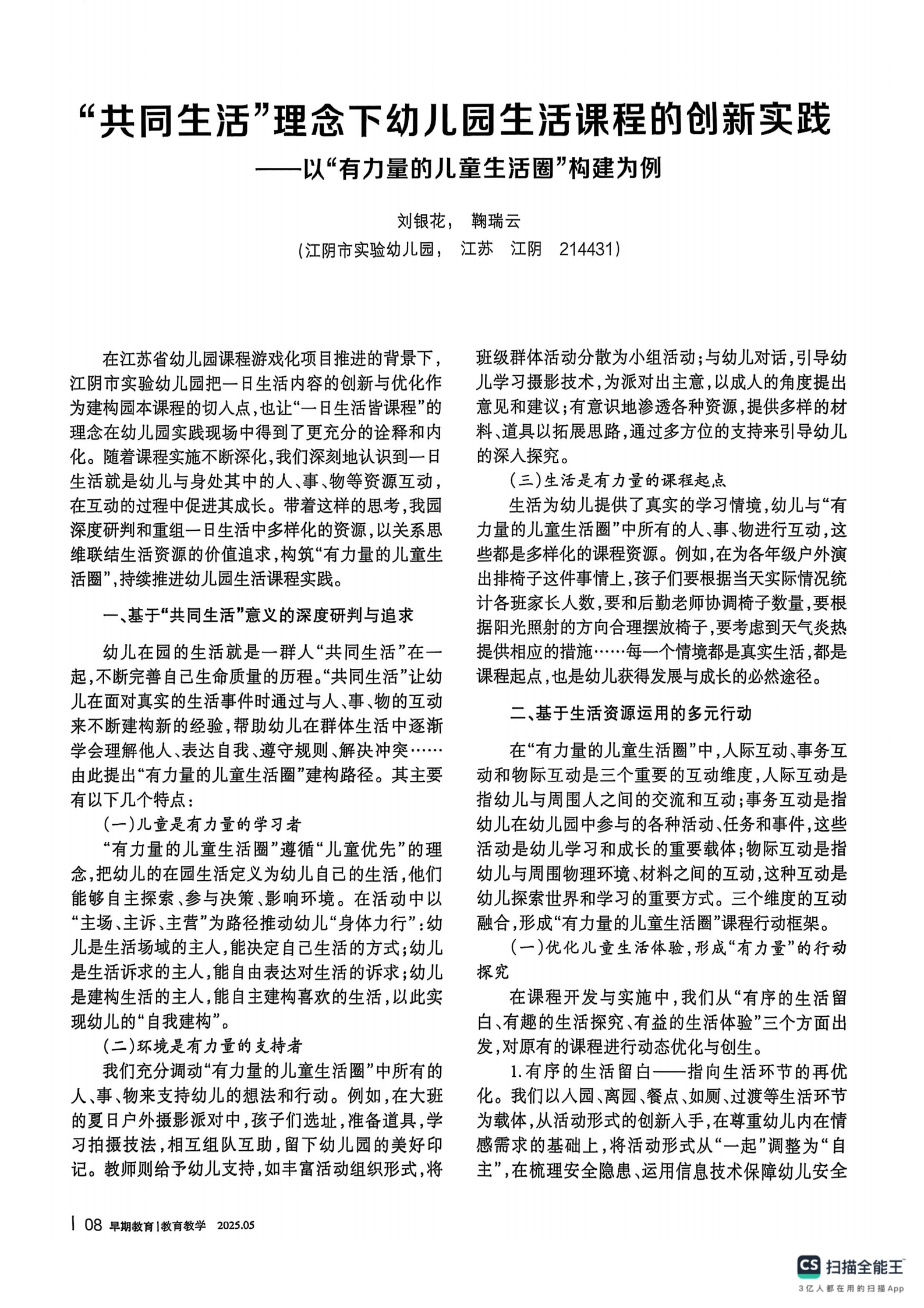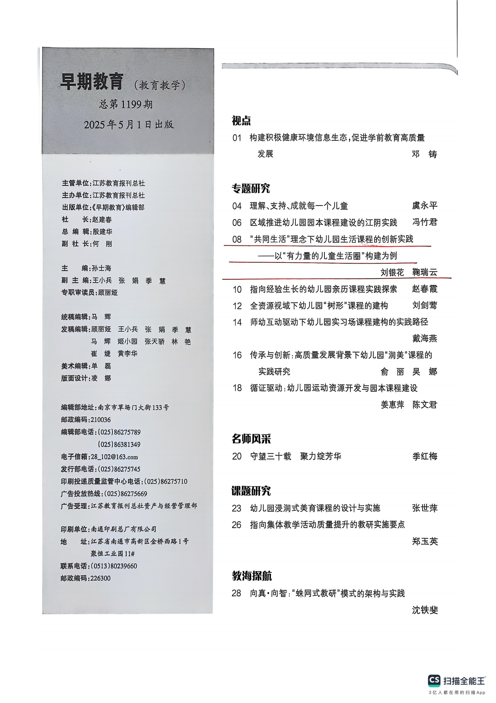 刘银花、鞠瑞云老师的《“共同生活”理念下幼儿园生活课程的创新实践》发表于早期教育