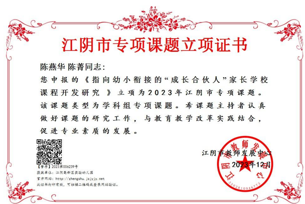陈燕华学科组专项课题《指向幼小衔接的“成长合伙人”家长学校课程开发的实践研究》