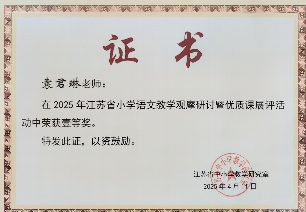 袁君琳获评江苏省优质课展评活动一等奖 2025-09-23