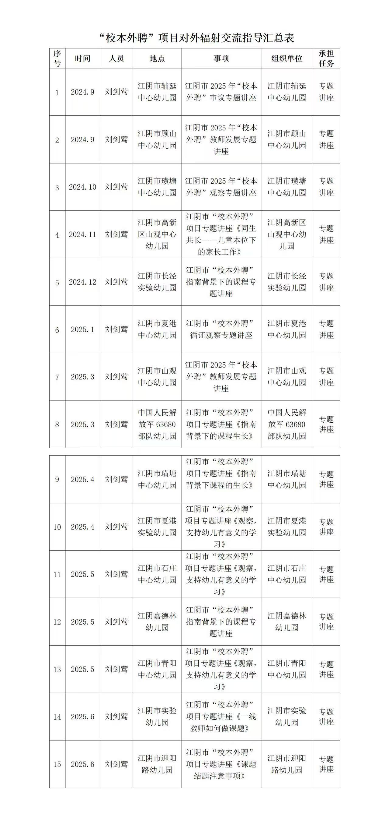 刘剑莺老师“校本外聘”项目对外辐射交流指导(共15次)