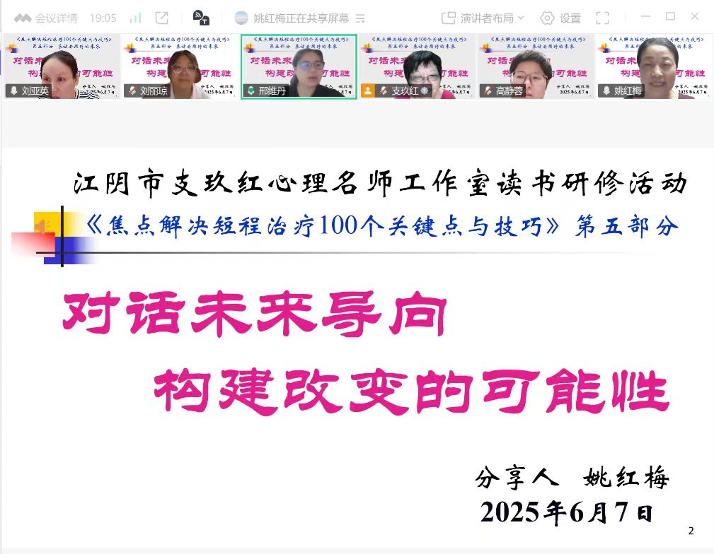 2025.6.7支玖红心育名师工作室全体成员在线研讨《焦点解决短程治疗100个关键点与技巧》