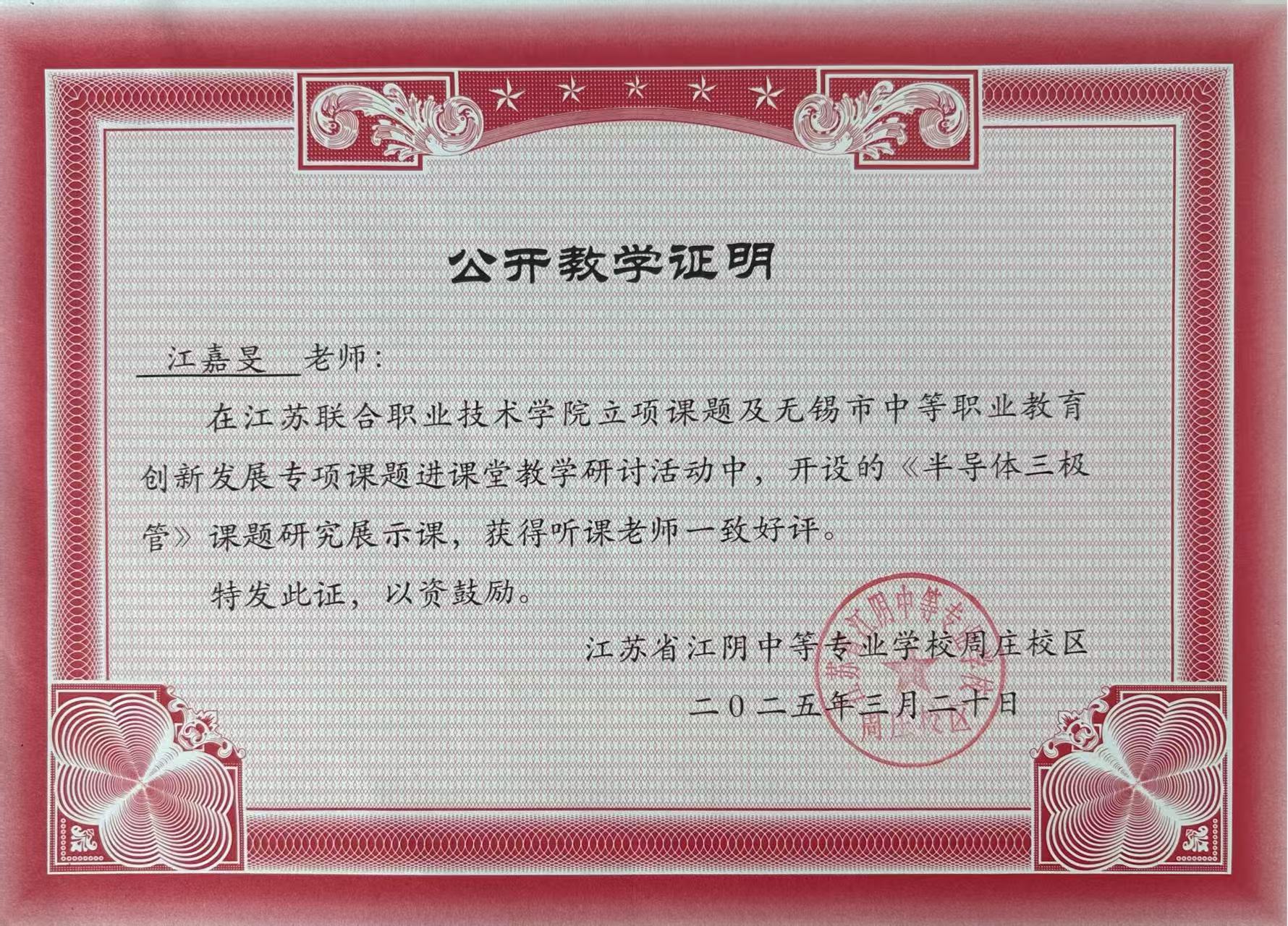 网站类目:教学设计 活动级别:校级 活动类别: 执教姓名:江嘉旻 所在单位:江苏省江阴中等专业学校 执教时间:2025-09-24 执教地点:江苏省江阴中等专业学校 执教内容:半导体三极管 参加对象:全校教师