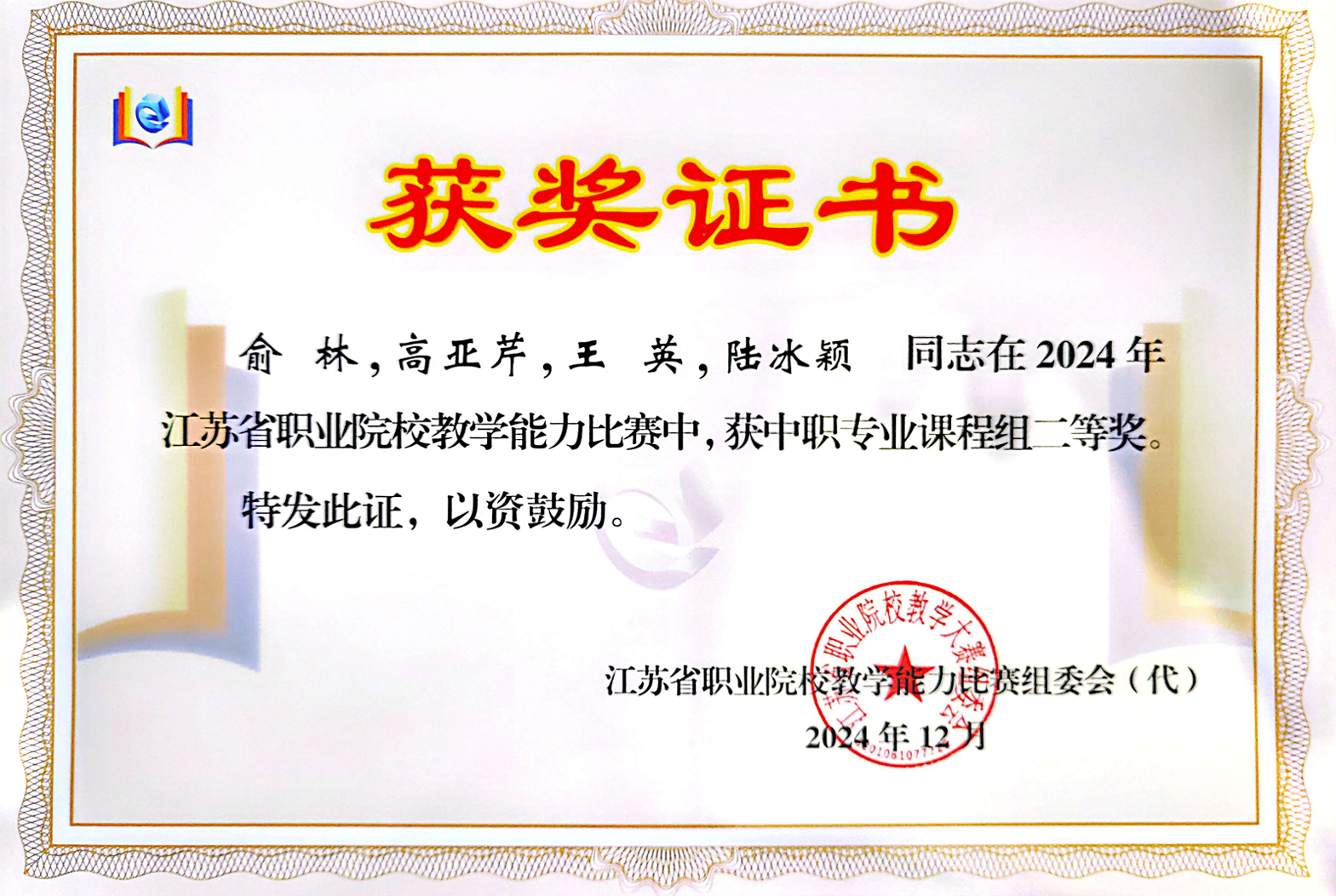 俞林获江苏省职业院校教学能力比赛二等奖 2025-09-24