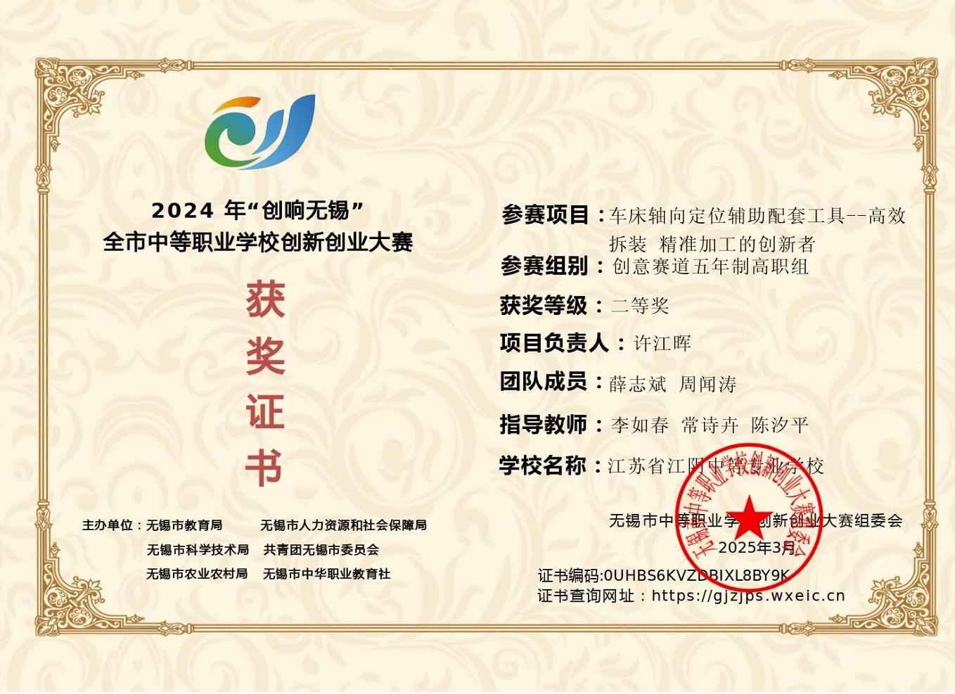 常诗卉指导学生获无锡市职业院校创新创业大赛二等奖