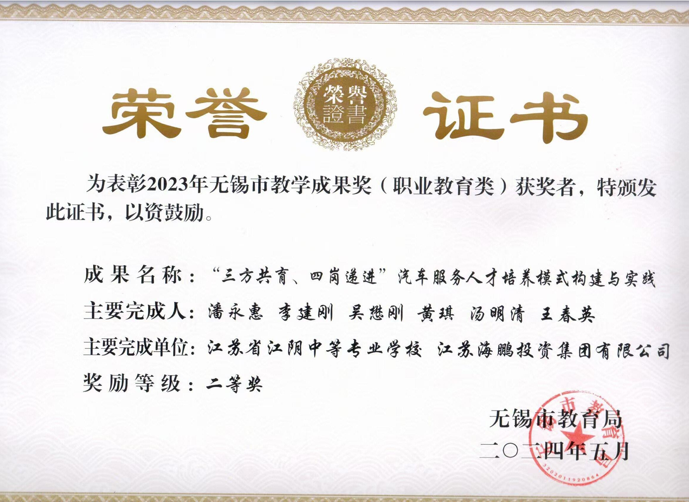 黄琪获无锡市教学成果奖二等奖 2025-09-24
