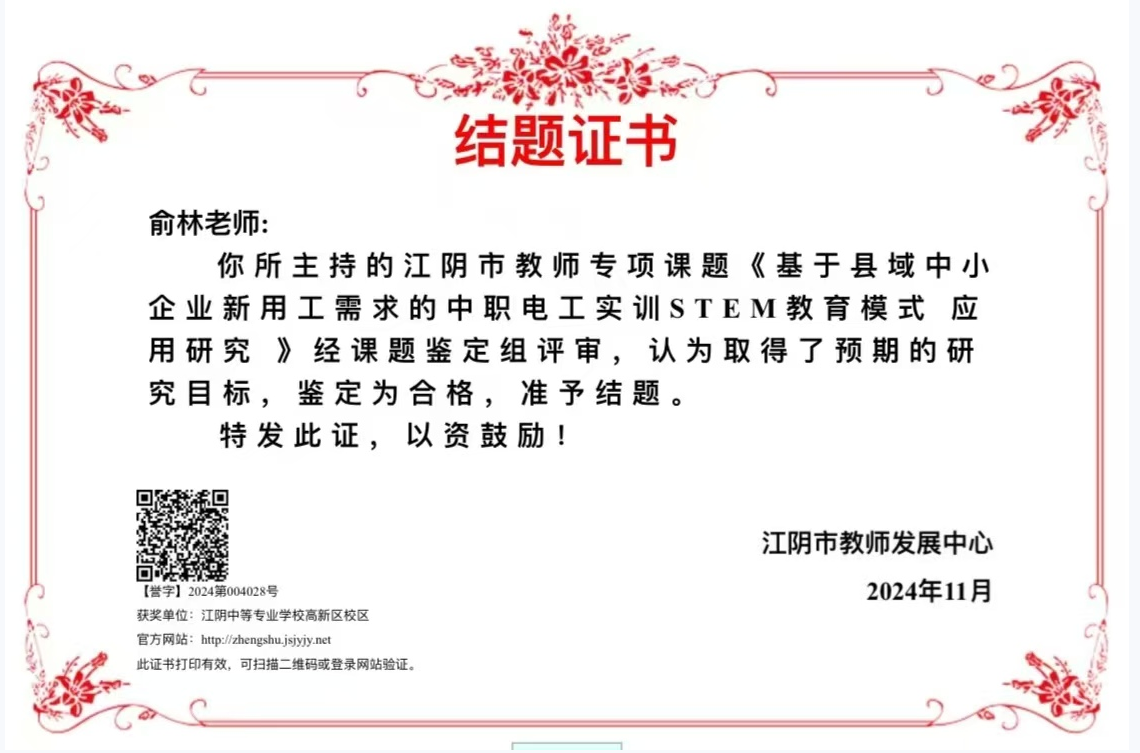 基于县域中小企业新用工需求的中职电工实训STEM教育模式研究 2025-09-24