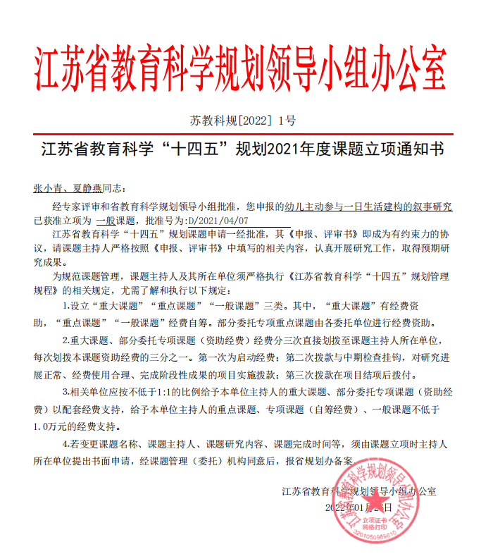 张小青同志江苏省教育科学“十四五“规划2021年度课题立项及中期检查 2025-09-24