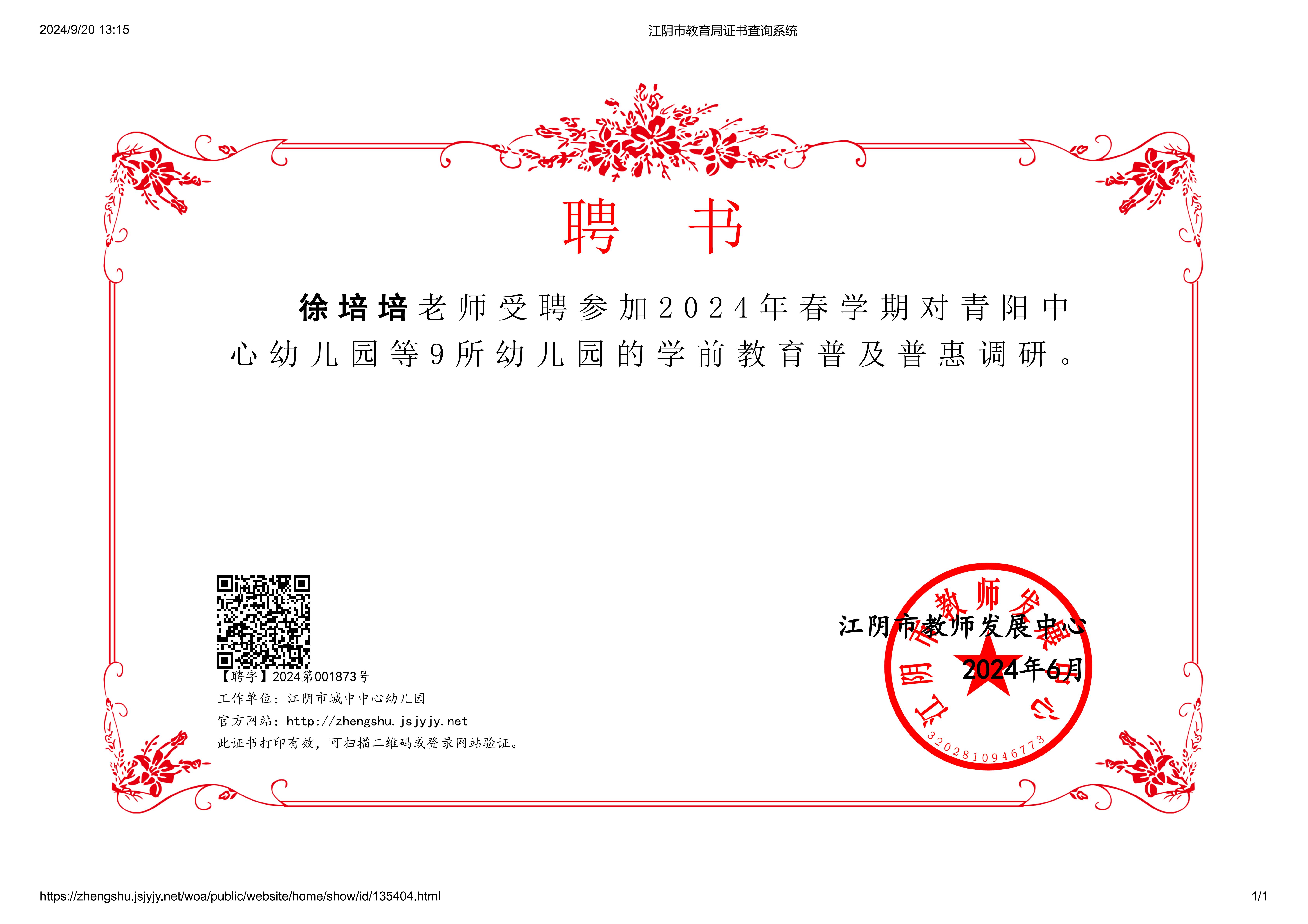 徐培培受聘参加2024年春学期对青阳中心幼儿园等9所幼儿园的学前教育普及普惠调研