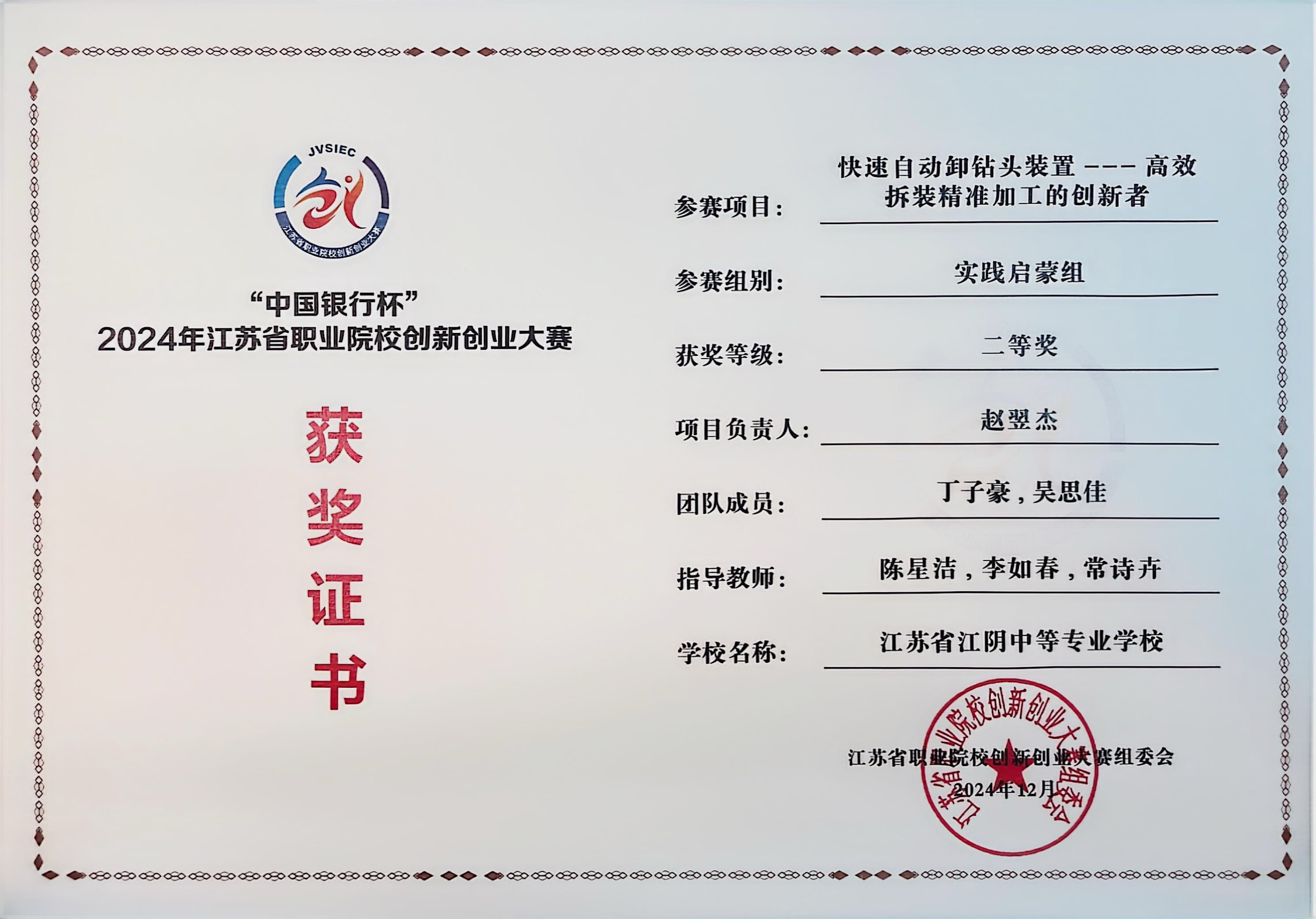 常诗卉老师在2024年江苏省职业院校创新创业大赛中指导学生获得二等奖
