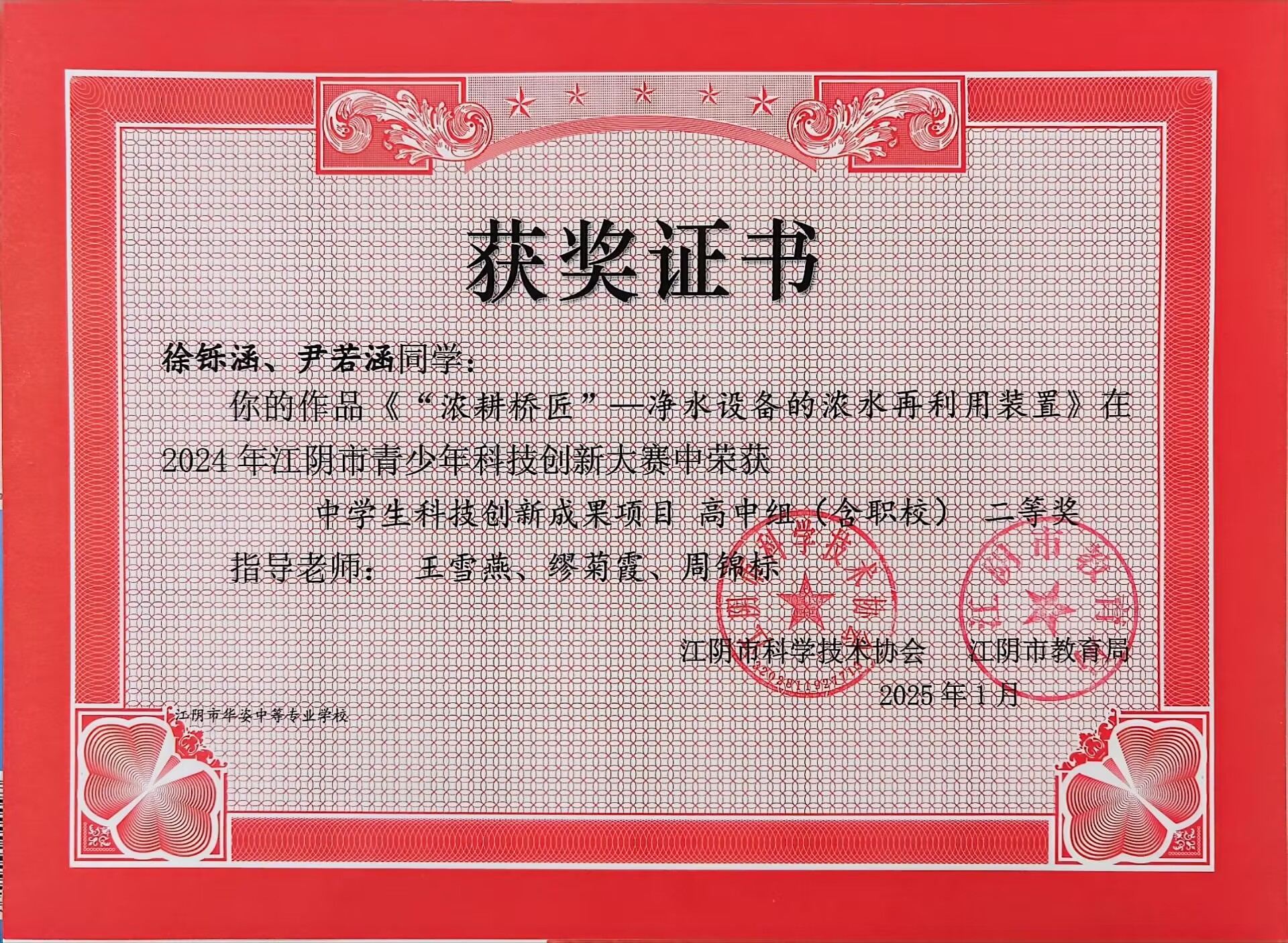 周锦标老师在江阴市青少年科技创新大赛中指导学生获得二等奖