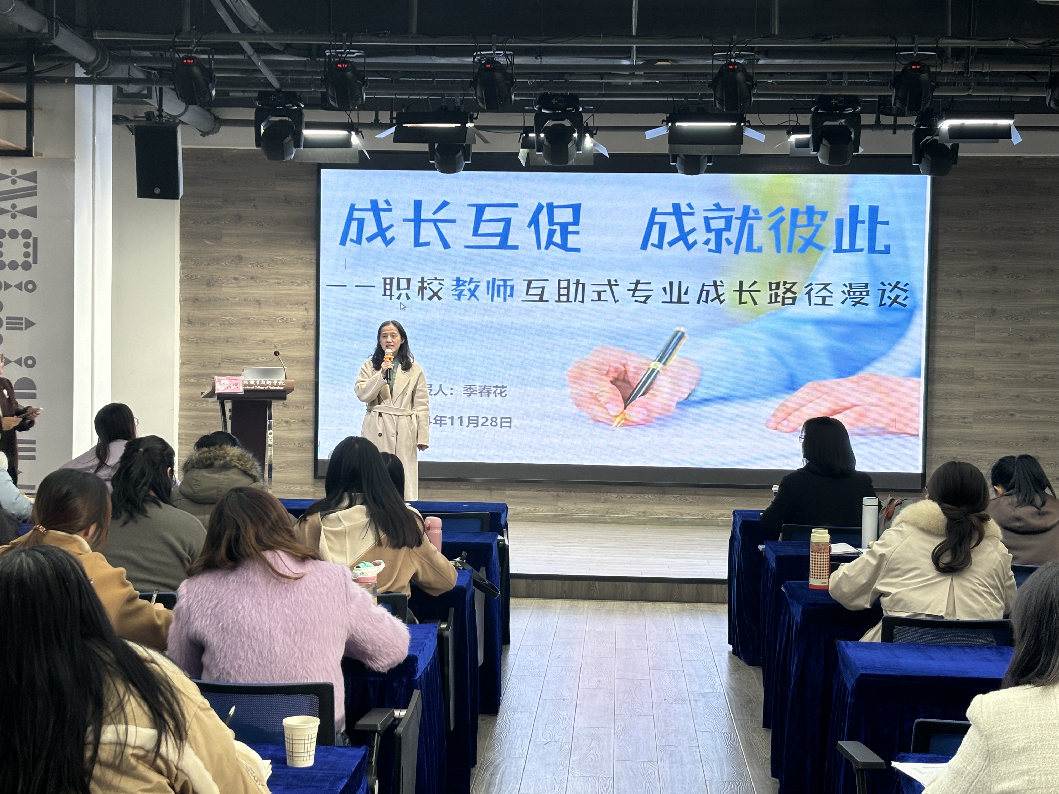 最后,季春花主任带来了一场专家讲座《职业学校公共基础课教师互助式专业成长路径》,有效的路径、实用的方法、丰富的案例,给予了公共基础课老师专业成长的有效指导。