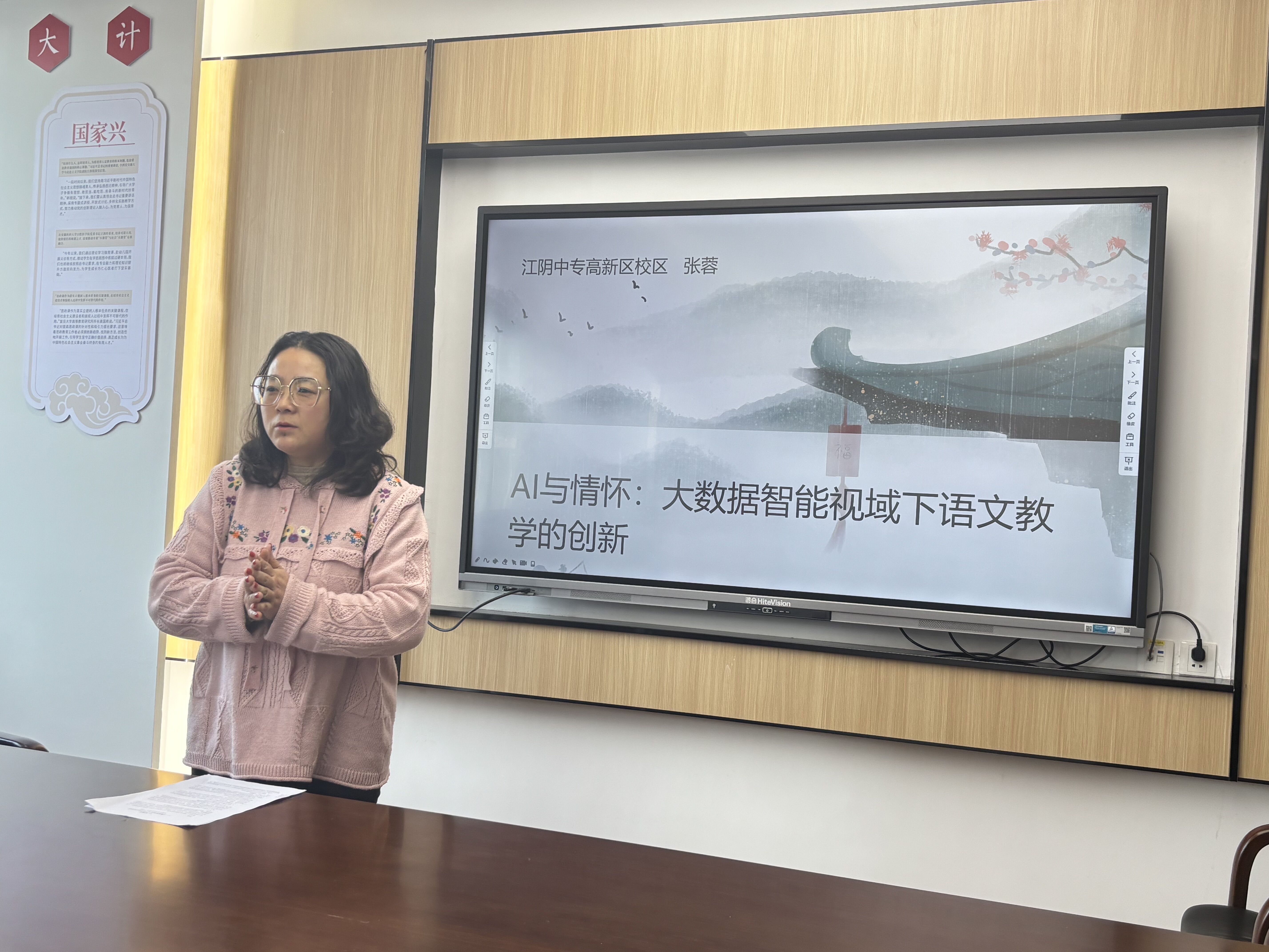 张蓉老师上学期参加了国家级的语文教学骨干教师培训,本次活动中,她以《AI与情怀:大数据智能视域下语文教学的创新》为题,分享了她的体验与收获。张老师提出,面对大数据技术逐渐普及的现状,我们要认真思考和分析如何进行语文教学的创新,在新的环境下更好地发挥我们作为教师的职能。张老师提出的“融合发展”“做引领者”等观点得到了工作室成员的一致肯定。