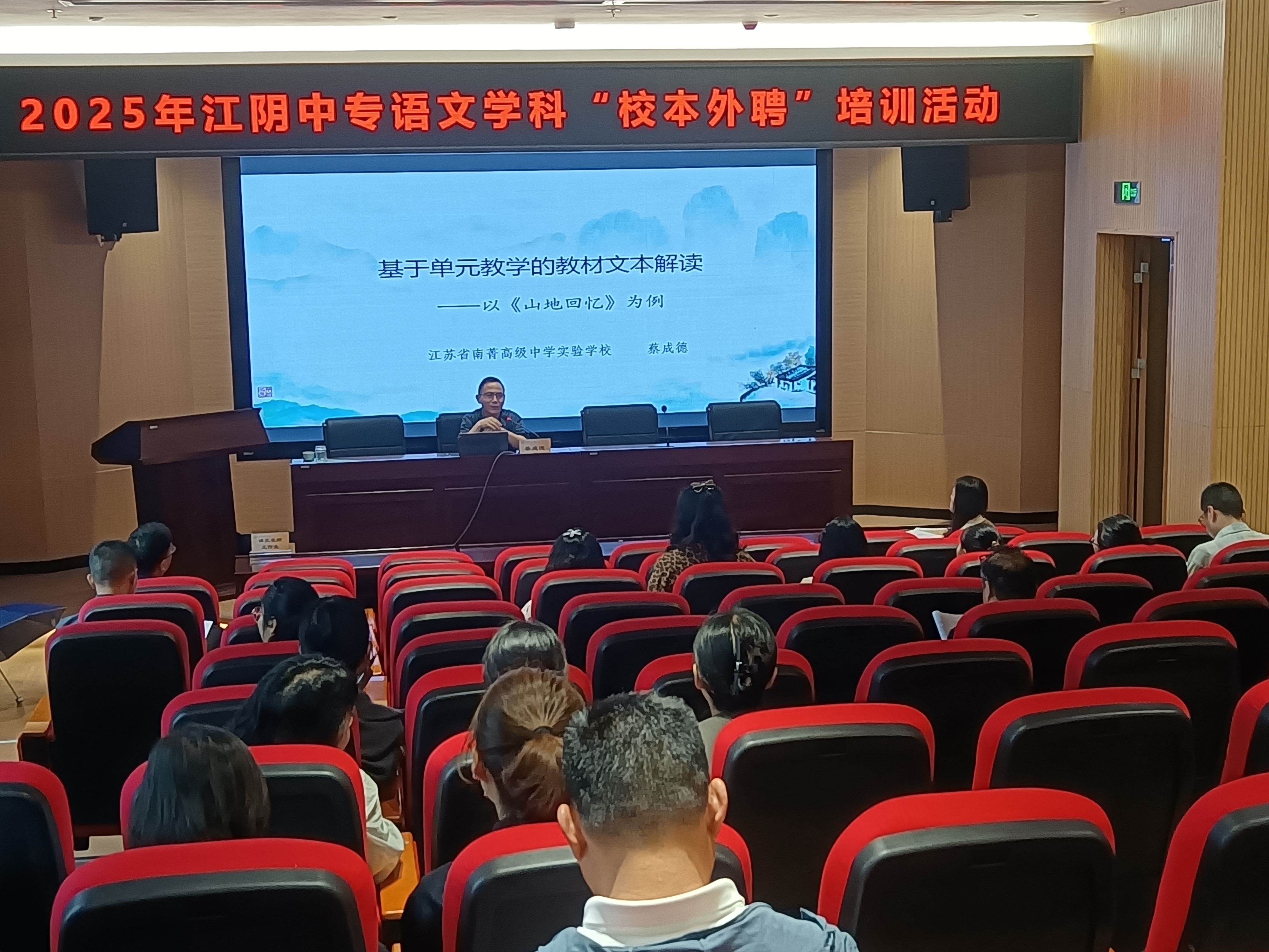 2025年5月8日,由江阴中专、江阴市季春花语文名师工作室共同承办的江阴市中职语文学科“校本外聘”培训项目在江阴中专成功举行。本次培训分为“同备一门课”主题教研活动、专家讲座两个环节。活动由工作室负责人季春花主任主持,工作室成员及我市各职业学校语文骨干教师参加了本次培训。