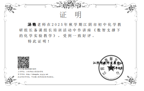 网站类目:专题讲座 活动级别:市级 活动类别: 执教姓名:汤艳 所在单位:江阴市敔山湾实验学校 执教时间:2025-09-05 执教地点:敔山湾实验学校 执教内容:数智支撑下的化学教学 参加对象:初中化学备课组长