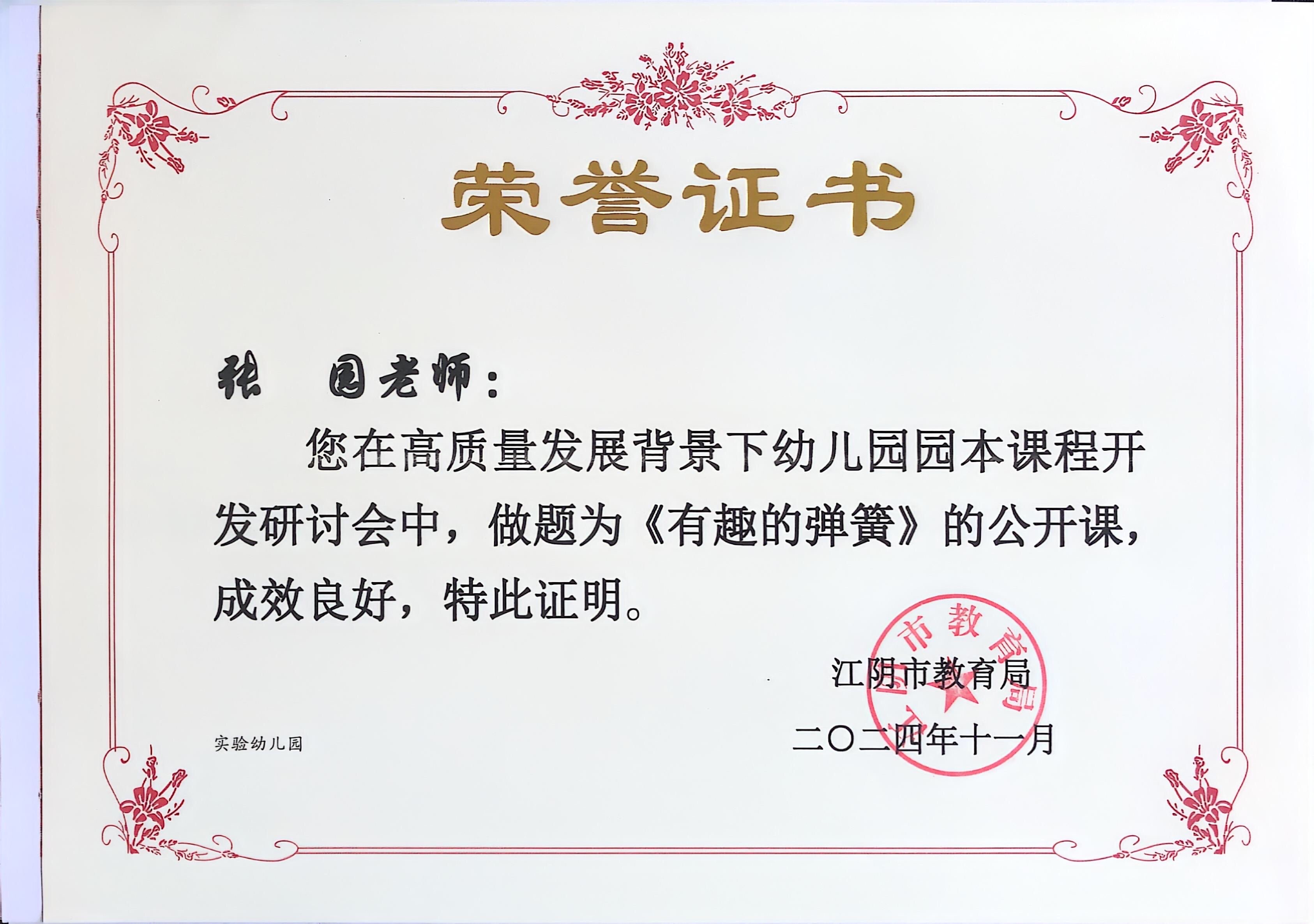 张园在高质量发展背景下幼儿园园本课程开发研讨会中执教题为《有趣的弹簧》公开课