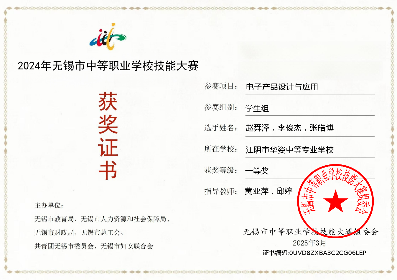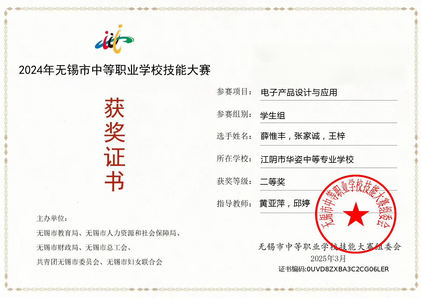 评比部门:无锡市职业院校技能大赛组委会