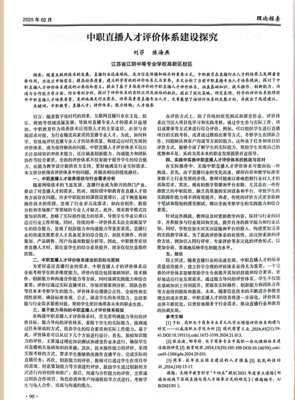 刘莎论文 2025.2《中职直播人才评价体系建设探究》发表于《中华智力开发报》