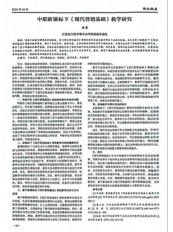 陈霞论文2025.2《中职课标下现代营销基础教学研究》发表于《少年智力开发报》 2025-09-26