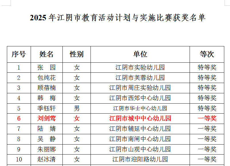 刘剑莺获2025年江阴市教育活动计划与实施比赛一等奖 2025-09-26