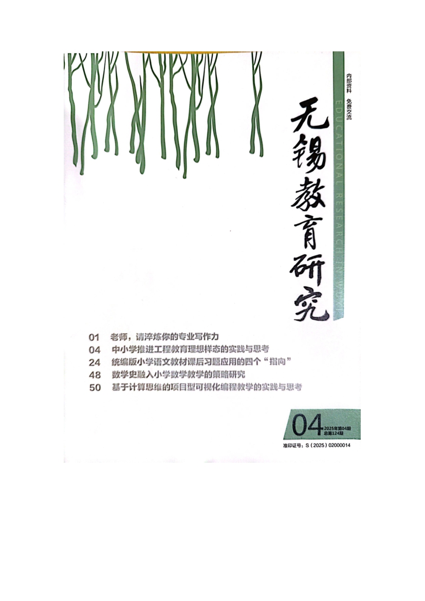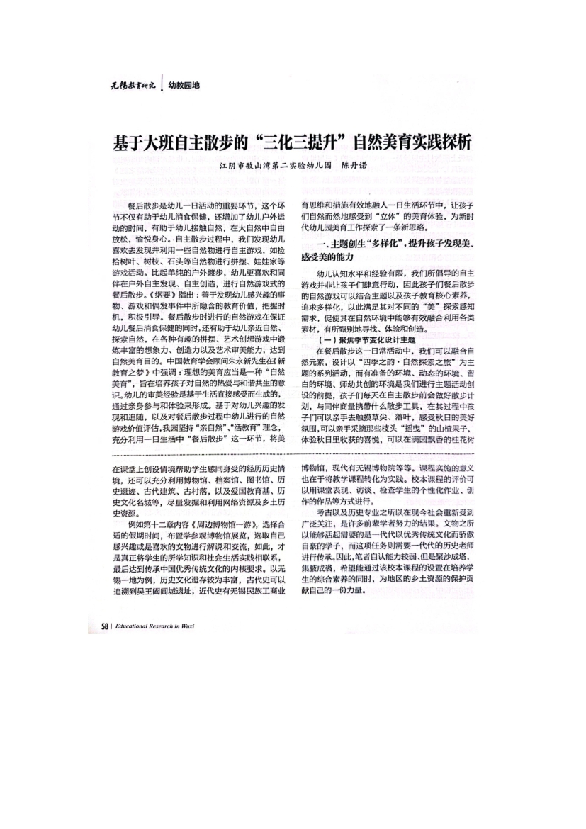 陈丹诺论文《基于大班散步的“三化三提升”自然美育实践探析》发表于无锡教育科学研究院