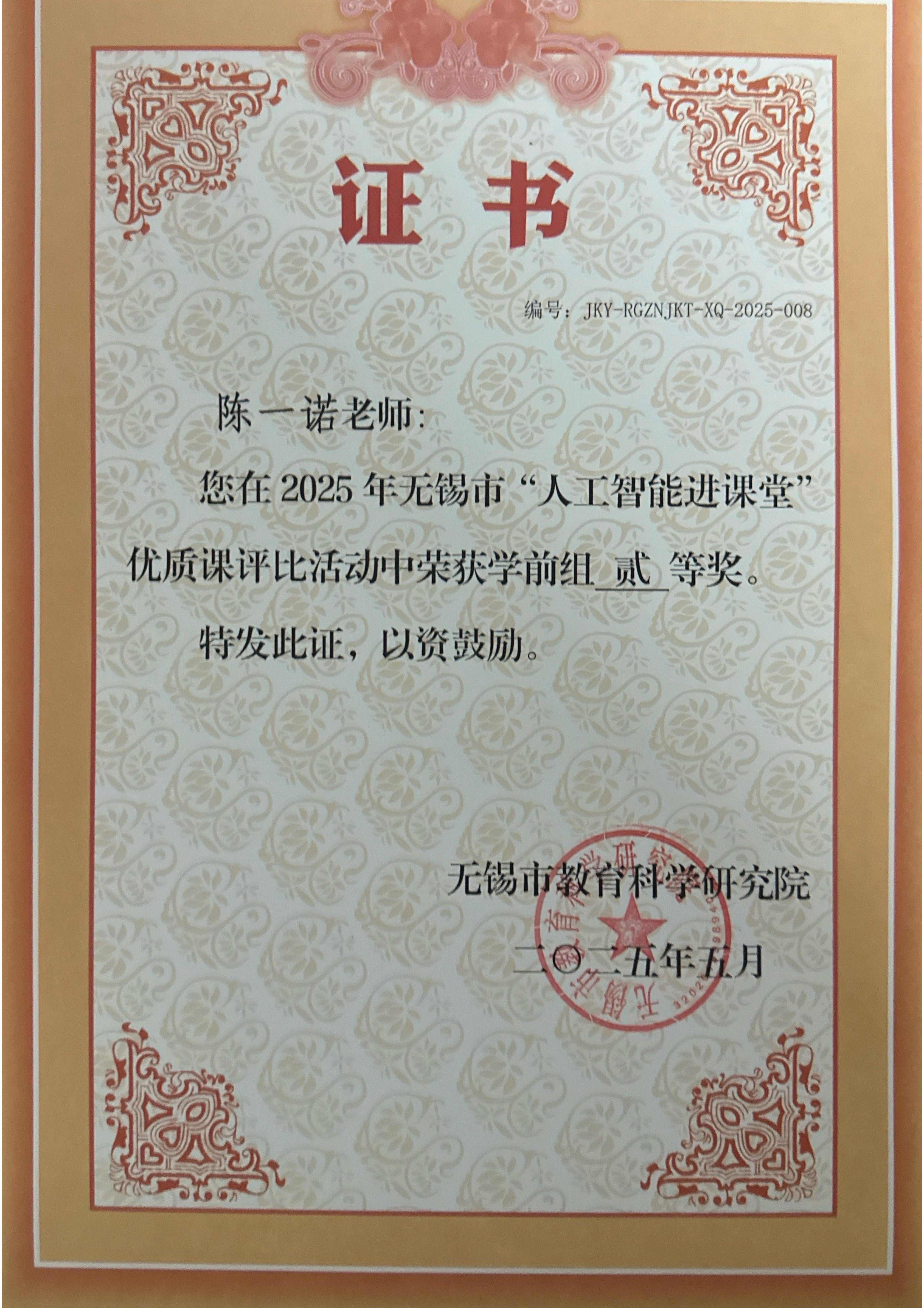 陈一诺:无锡市人工智能进课堂优质课二等奖