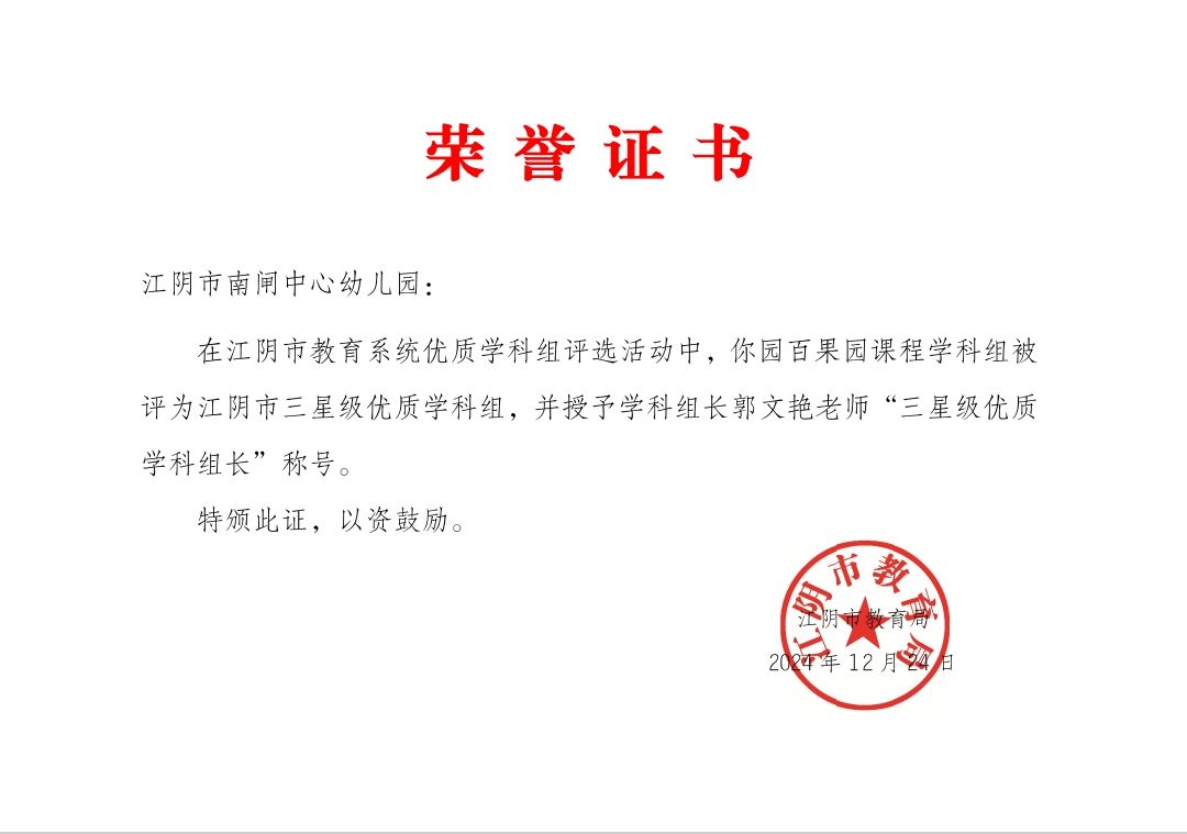 所在单位:江阴市南闸中心幼儿园