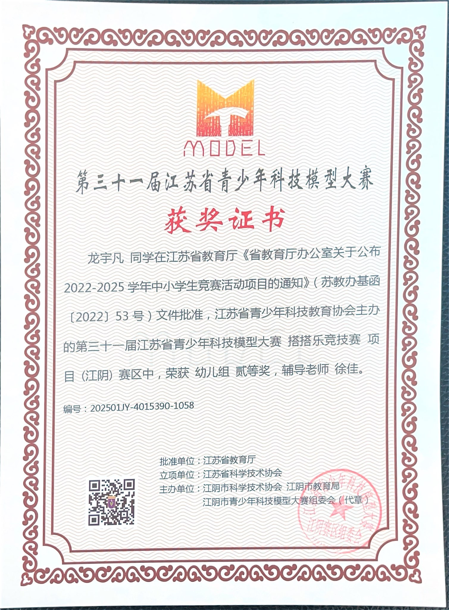 徐佳:江苏省青少年科技模型大赛江阴赛区二等奖 2025-09-26