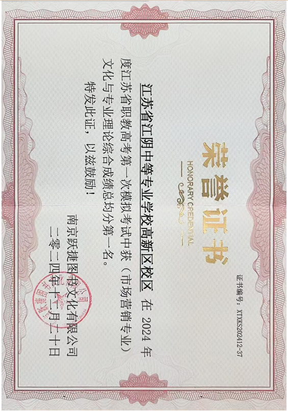 2024.12市场营销专业一模考试全省第一