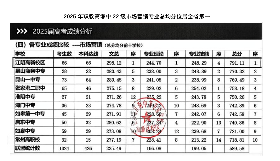 2025年市场营销专业高考成绩全省第一