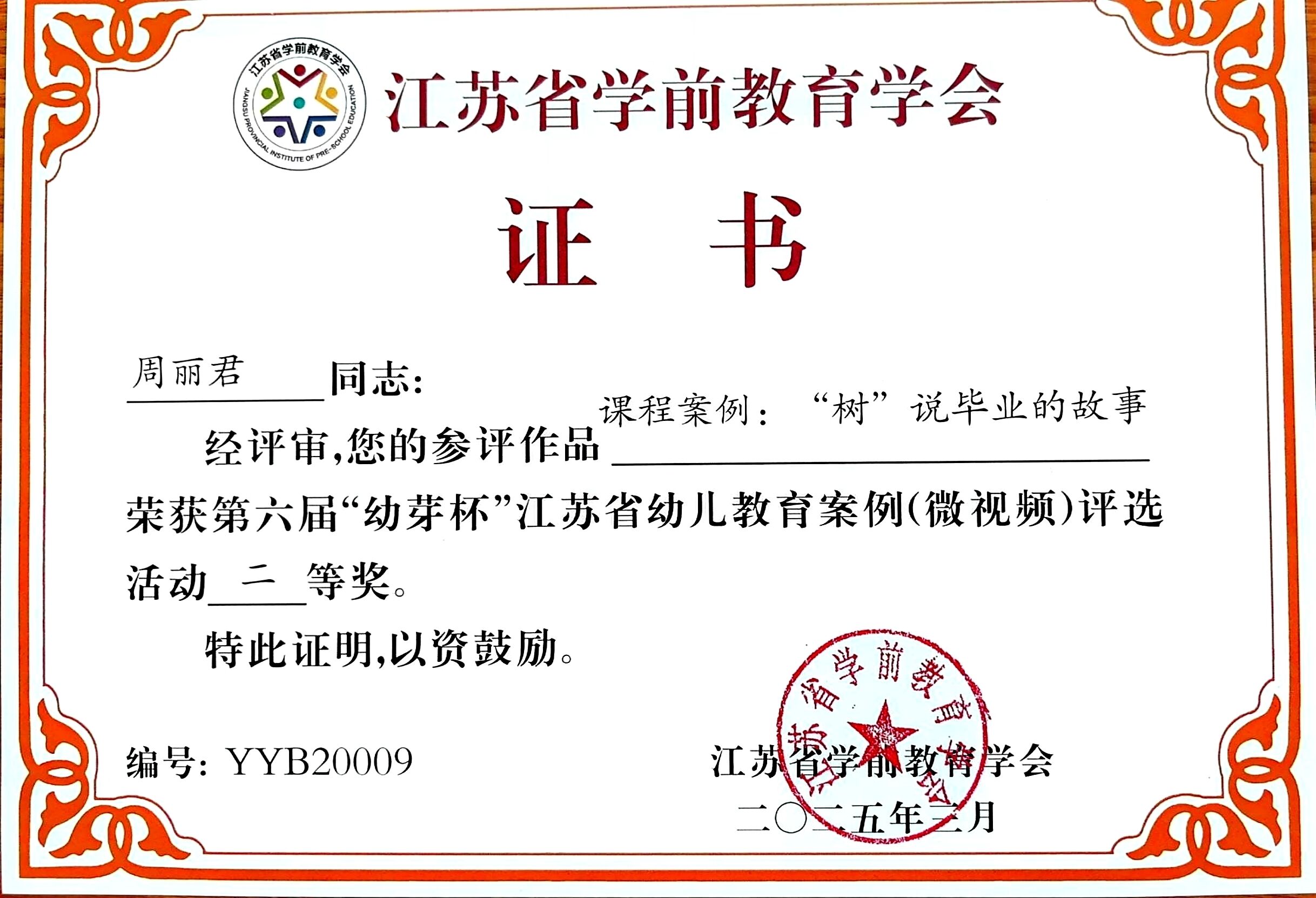 周丽君:江苏省“幼芽杯”教学案例设计比赛二等奖