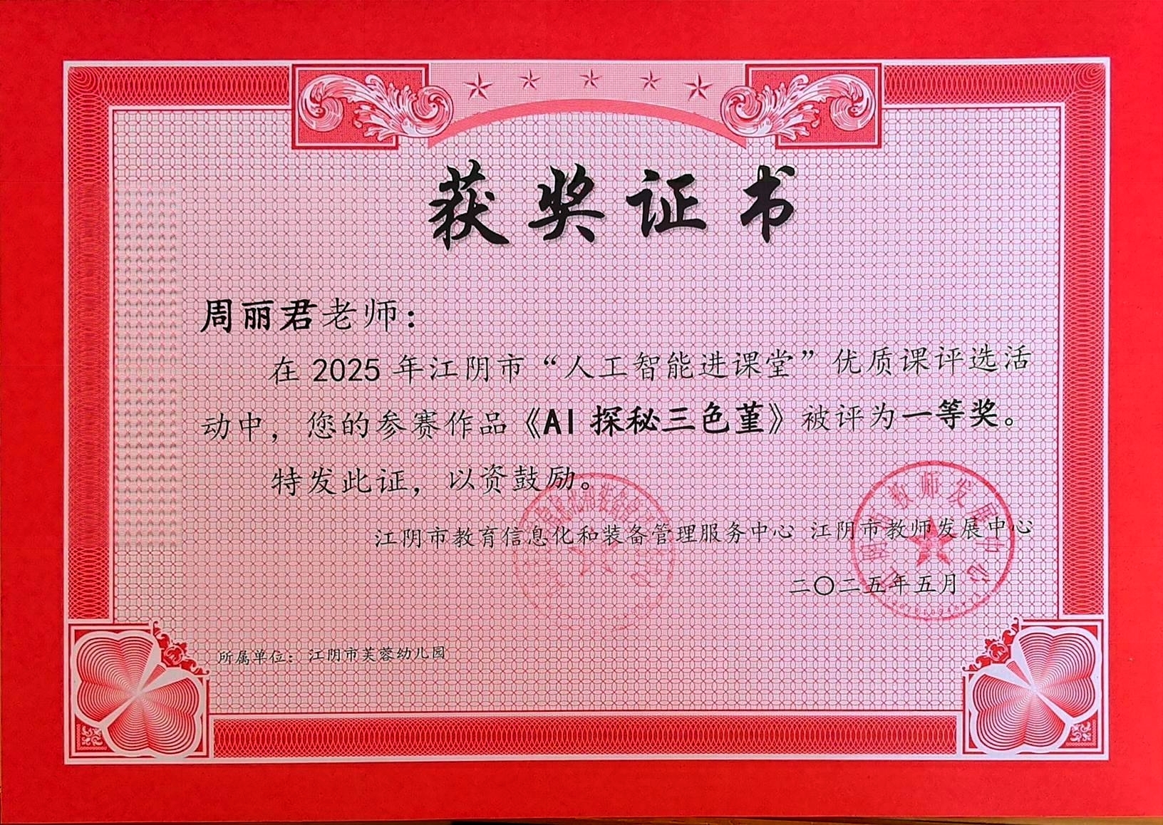 周丽君:江阴市“人工智能进课堂”教学比赛一等奖