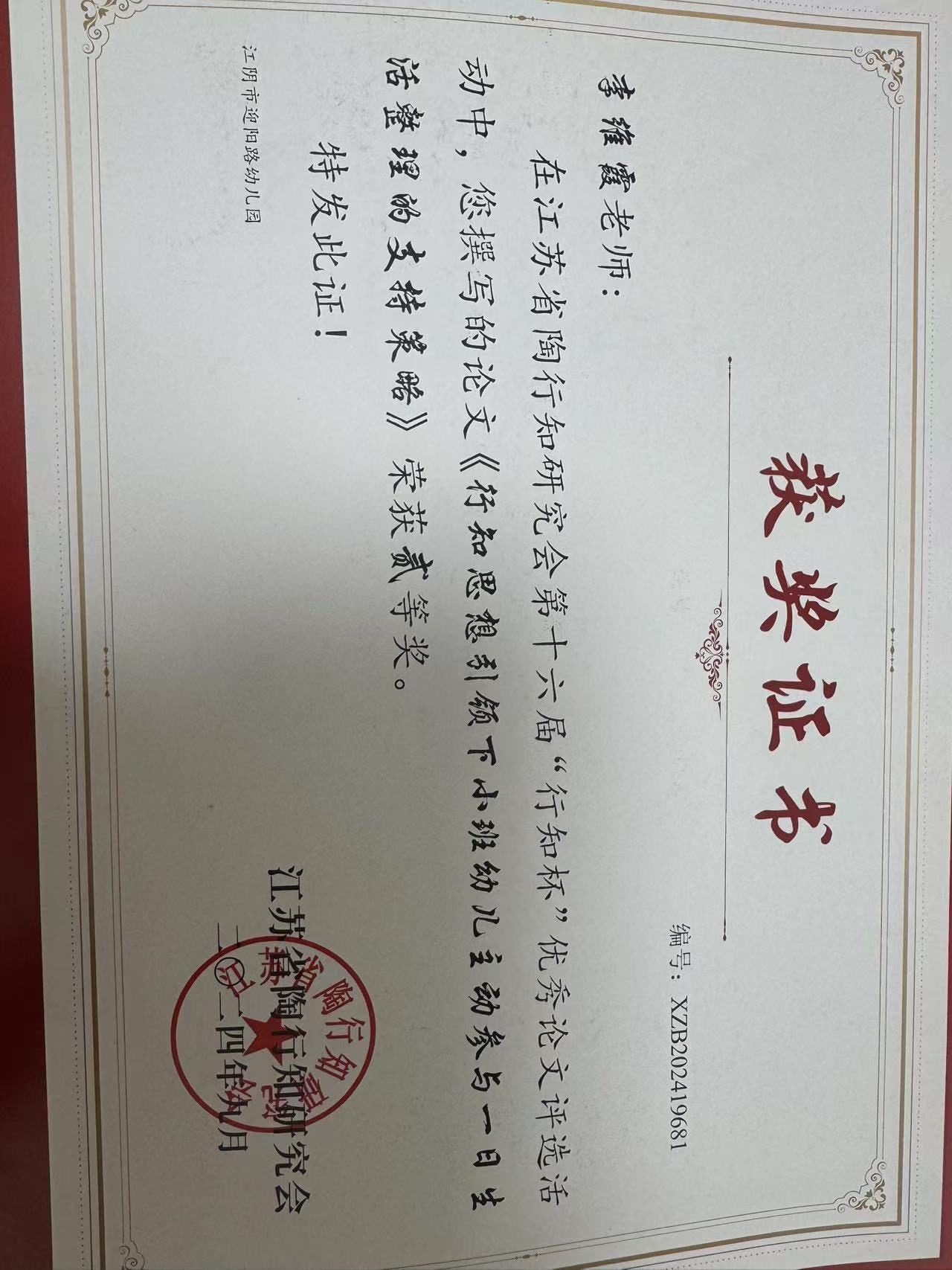 李维霞:论文《行知思想引领下小班幼儿参与一日生活整理的支持测量》获江苏省二等奖