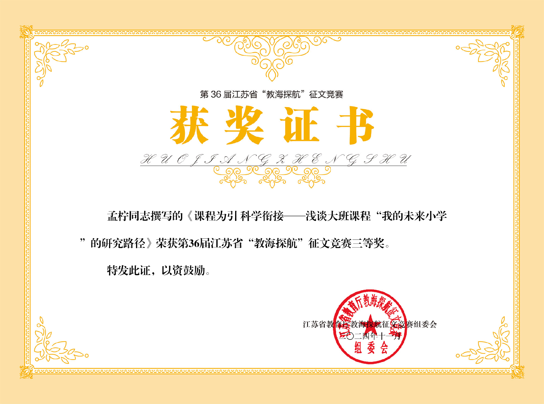 孟柠:论文《课程为引 科学衔接》获江苏省教海探航三等奖