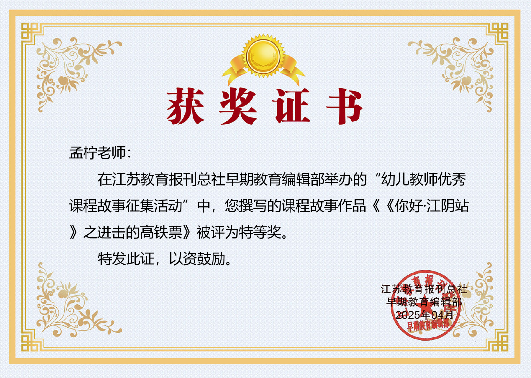 孟柠:课程故事《你好,江阴站》获江苏省教育报刊总社特等奖