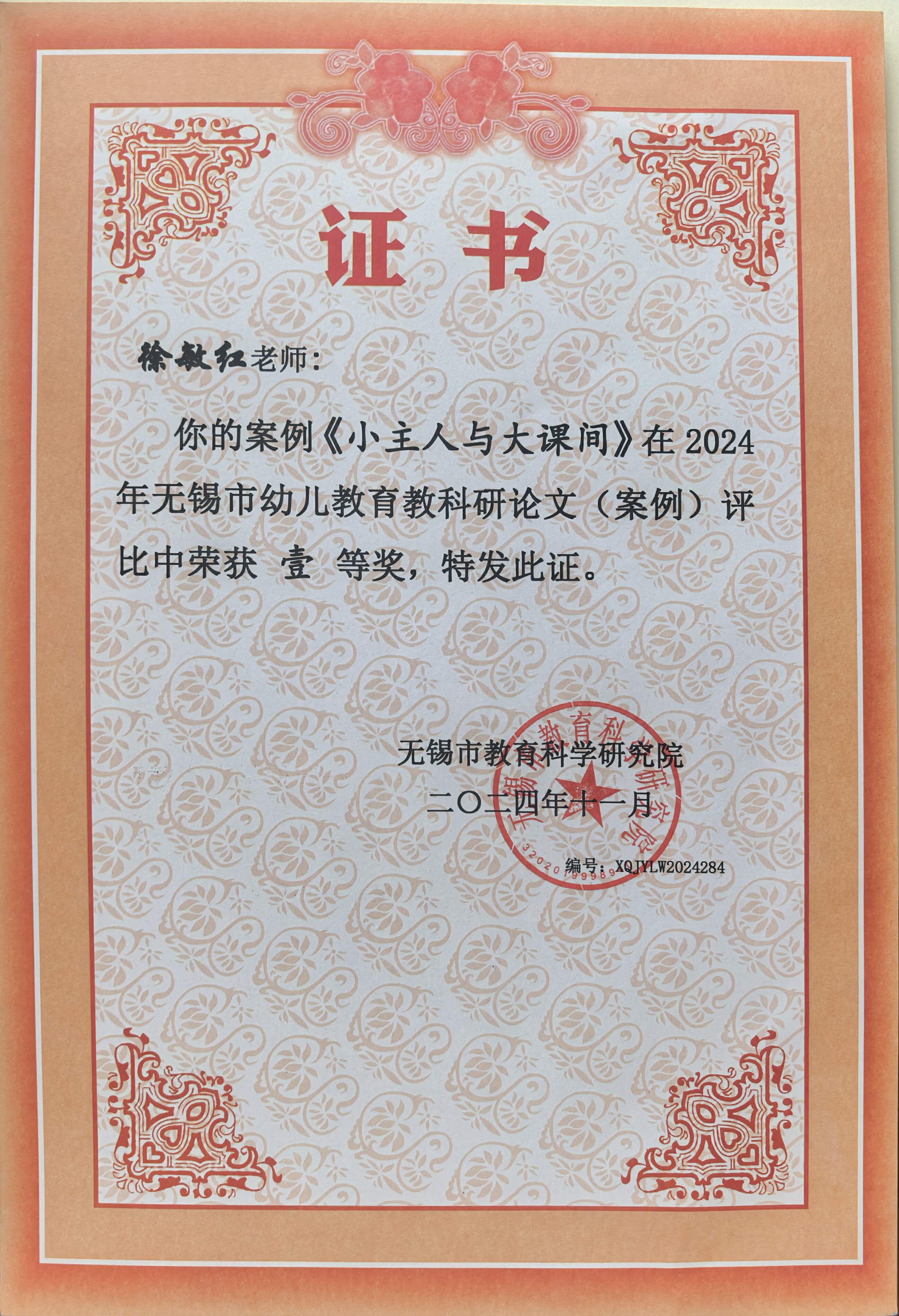 徐敏红:论文《小主人与大课间》获无锡市一等奖