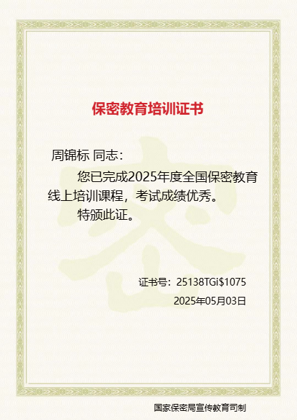 周锦标老师参加2025年度全国保密教育线上培训课程