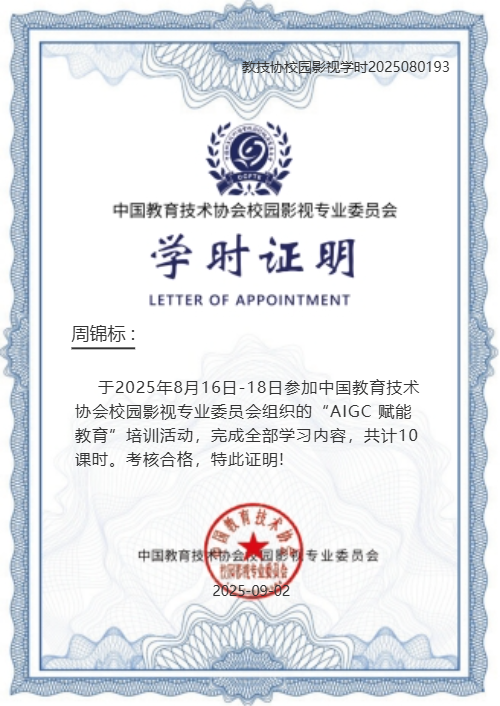周锦标老师参加中国教育技术协会校园影视专业委员会组织的“AIGC赋能教育”培训活动