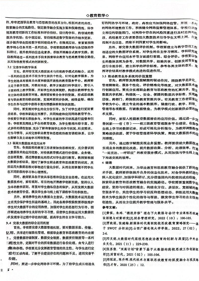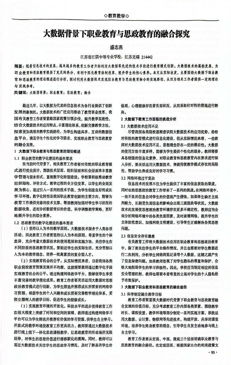 盛志燕老师发表论文《大数据背景下职业教育与思政教育的融合探究》