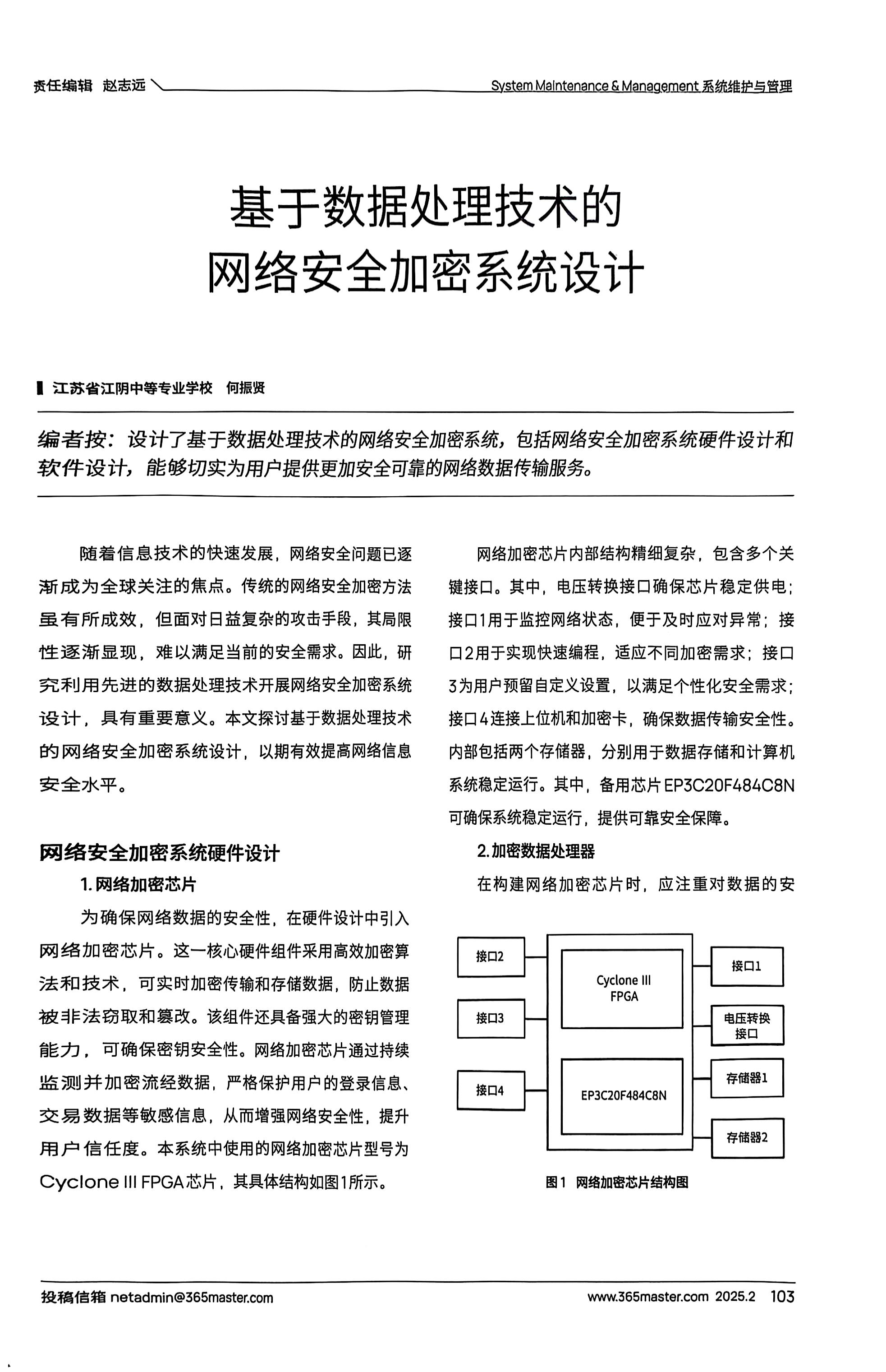 何振贤老师发表论文《基于数据处理技术的网络安全加密系统设计》