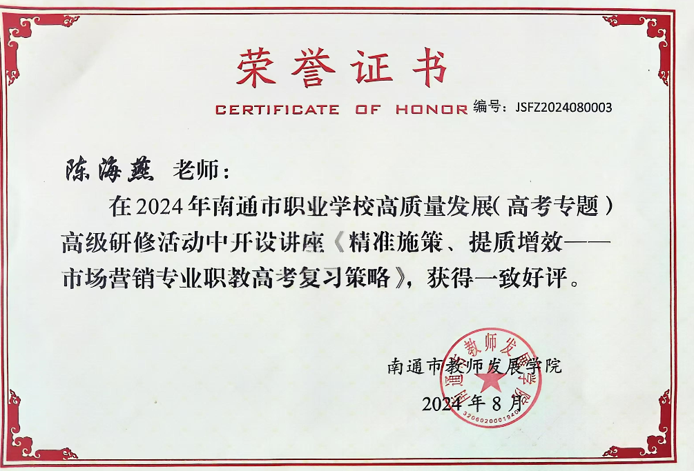 陈海燕2024.8南通教师发展中心开设讲座