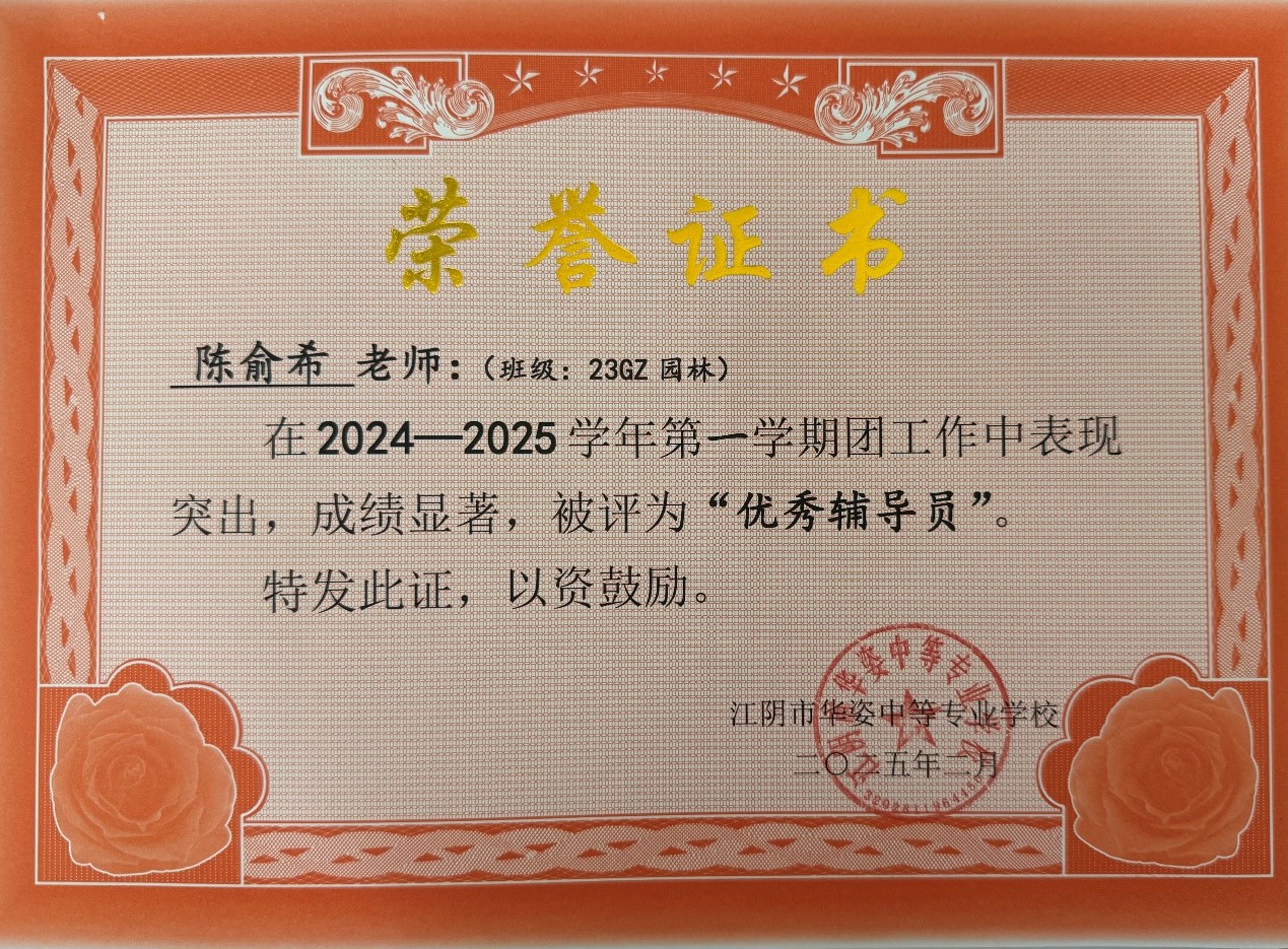 陈俞希老师被评为社团优秀辅导员