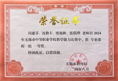 闵惠芬获2024年无锡市中等职业学校教学能力比赛一等奖