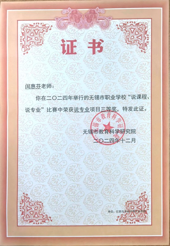 闵惠芬获2024年无锡市“说课程、说专业”三等奖