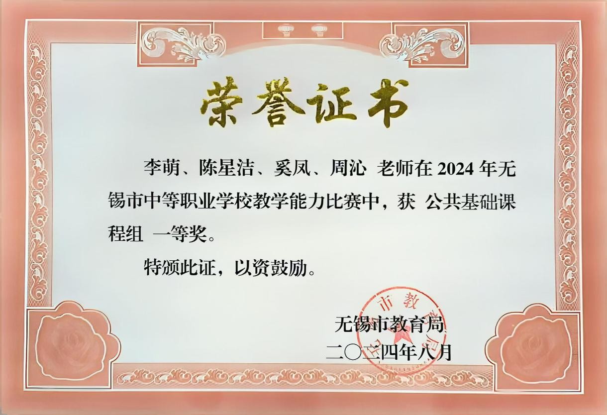 陈星洁获2024年无锡市中职教学能力比赛一等奖